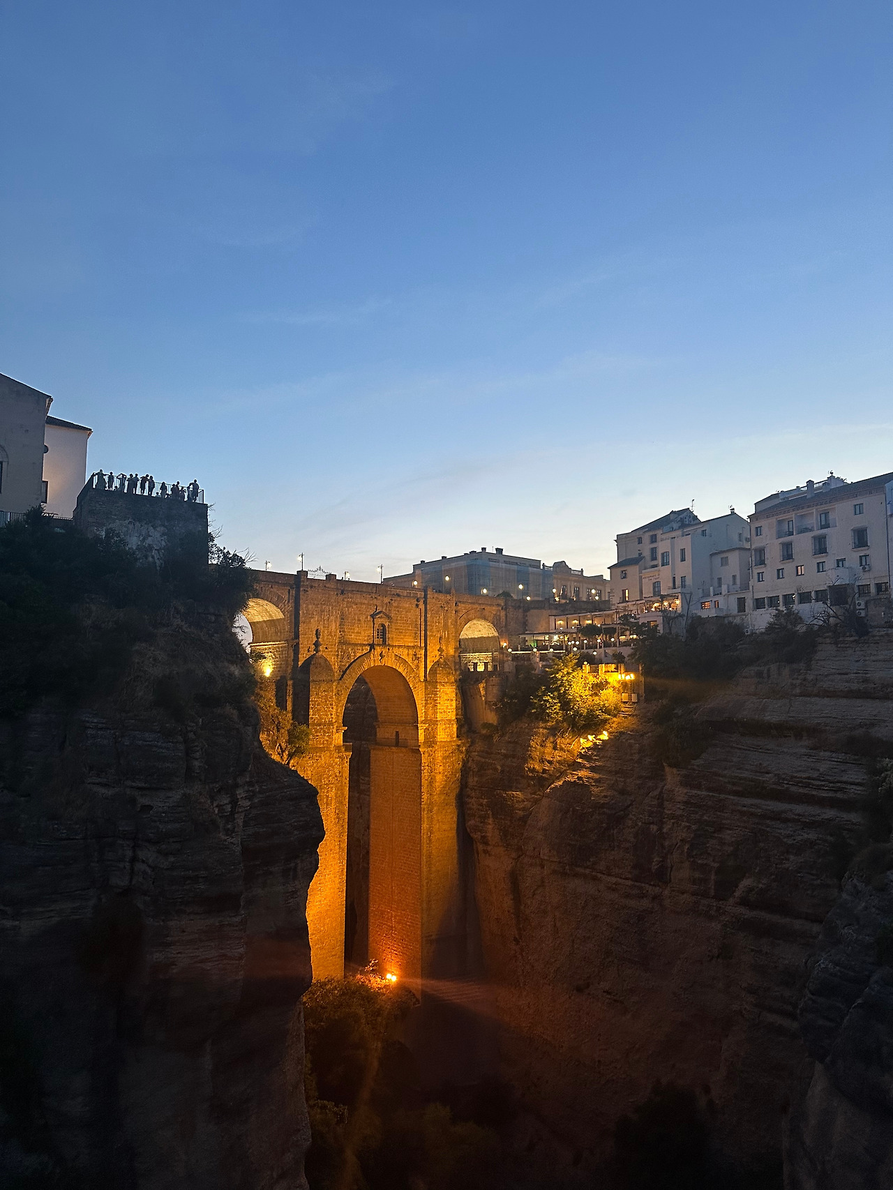 사하라를 떠나 론다에 도착했다. 막 도착했을 때는 날이 밝아 그 진가를 몰랐다. 밥을 먹고 자유시간을 즐길 때 그 론다의 진가가 나오기 시작했다. 천천히 어두워 지고 주황빛 노을이 덮을 때 서 있었던 순간이 오랬동안 기억이 날것 같다. 낭떨어지 끝과 끝을 이어주는 누에보다리는 황홀 했고 절벽 무대에서 듣 오케스트라는 낭만적이었다. 해가 지고, 누에보다리 야경을 보러 전망대로 갔다. 사진을 찍으러 온 관광객들도 조용히 사진을 찍고 머물렀다. 나도 한참 멍하니 서 있었다. 특별한 생각은 들지않았다. 그게 오히려 더 좋았다. 론다는 뭔가 느끼려하지 않아도 되는 도시였다. 보기만해도 충분하다는 말이 정확한 것 같다. 론다는 '낭만'이란 단어로 정의할 수 있다. 여행의 하루끝에 낭만있는 도시와 함께해 행복했다.