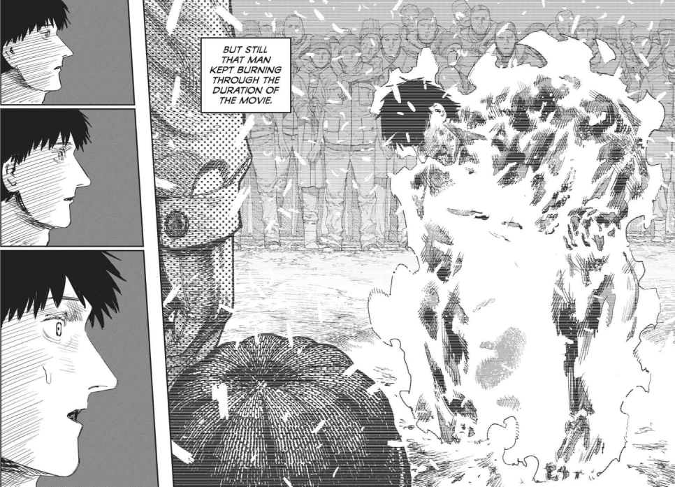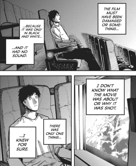 언젠가 작품 속에서 토가타는 '사람이 죽으면 영화관에 간다'고 했습니다. 원하는 영화의 티켓을 고르고, 팝콘을 사서 상영관 안으로 들어가서 계속 원없이 영화를 볼 수 있다는 것이었습니다. 이 말을 바탕으로 생각해 보면 두 사람의 온전한 죽음을 암시하고 있다는 것을 알 수 있습니다. 그래서 이 결말은 무엇이며 도대체 무슨 말이 하고 싶은 걸까요? 만화를 조금 되감아서, 몇 가지 장면을 함께 봅시다.