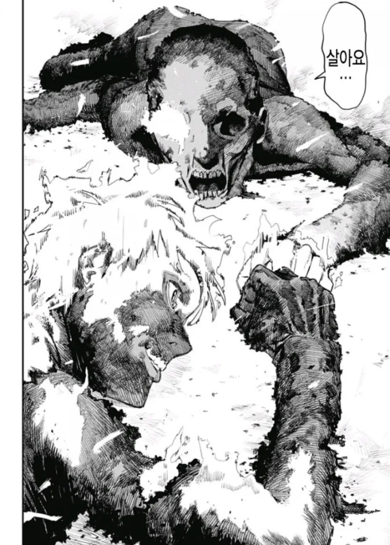 파이어 펀치가 연재 초반 그렇게나 떠들썩했던 이유는 파격적인 전개와 더불어 작화의 공이 큽니다. 극화풍과 만화풍의 사이에서 균형 잡힌 작화로 서브컬처 매니아부터 매니아가 아닌 사람들에게까지 폭넓게 어필할 수 있었습니다. 이 탄탄한 작화를 바탕으로 한 센스 좋은 연출도 파이어 펀치의 매력입니다. 좌측 사진에서 그런 부분이 잘 드러난다고 생각합니다. 이 수려한 작화와 연출은 파이어 펀치의 조금 독특한 전개 방식에도 독자들을 유지하는 큰 원동력이 되었습니다. 물론 부정적인 의미에 더 가깝겠지만, 작가 본인이 추구하던 '도대체 어떻게 될까' 하는 만화라는 것도 한 몫 했을 것입니다.