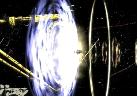 카우보이 비밥의 배경은 2071년이라는 먼 미래입니다. 사람들은 고향인 지구를 벗어나 화성이나 금성 등 여러 행성에 테라포밍하여 살아가고 있습니다. 하지만 그것은 사람들의 모험이나 도전 같은 것에서 비롯된 진취적인 삶의 형태가 아니었습니다. 이에 대해 설명하려면 우선 작품의 중요한 설정인 '위상차 공간 게이트'에 대해 알고 넘어가야 합니다. 위상차 공간 게이트는 우주선과 물자가 넘나드는 일종의 포탈 같은 개념입니다. 통상의 240배에 달하는 속도로 광년 단위가 기본인 우주 항해의 시간을 어마어마하게 단축시켜 사람들의 생활 반경을 태양계 전체로 넓힐 수 있었던 대발명이라고 할 수 있습니다.