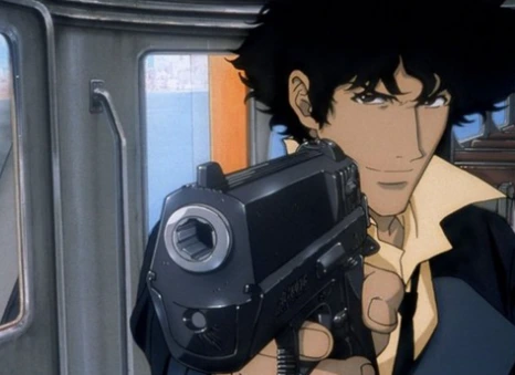 '범죄 조직에서 손을 씻은 주인공이 결국 과거와와 결판을 낸다'로 요약할 수 있는 비밥의 줄거리는 홍콩 느와르 영화에서 따온 것이 분명해 보입니다. 특히나 많은 영향을 받은 것으로 보이는 건 오우삼의 영화인데, 비밥 최고의 명장면이라고 할 수 있는 스파이크와 비셔스의 성당 결투 장면이 <첩혈쌍웅>을 떠올리게 한다는 점은 이미 유명합니다. 비셔스와 맞설 때마다 긴 기장의 롱코트를 입고 쌍권총을 사용하는 스파이크에게서는 <영웅본색>의 느낌을 진하게 받을 수 있습니다. 이 롱코트와 쌍권총 조합은 훗날 수많은 작품, 특히 <매트릭스> 등에게 계승되기도 합니다.
