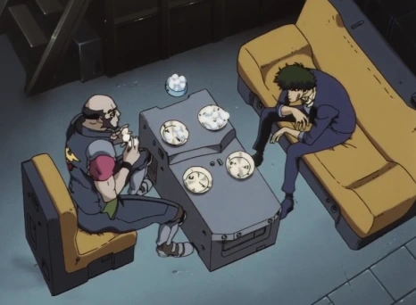 카우보이 비밥의 등장인물들 역시 그렇습니다. 스파이크는 꿈과 현실을 분간하지 못한 채 표류하듯 살고 있으며, 페이는 잃어버린 과거에 얽매여 있습니다. 하지만 그렇다고 이들이 삶 자체를 가벼이 여기거나 포기하는 것은 아닙니다. 밥 먹을 돈을 마련하기 위해 현상 수배 범죄자들을 쫓고, 카지노에서 한바탕 승부도 해 보고, 식대가 부족해 고기 없는 고추잡채만이 식사로 나오더라도 악착같이 먹습니다. 옴니버스 속 조연들 또한 앞서 말한 상실에도 불구하고 각자의 삶에 최선을 다하고 있습니다. 이토록 치열하게 살아가는 카우보이 비밥 속 인물들은 우리를 울고 웃게 하는 한편 그 자신들도 어딘가로 나아갑니다.