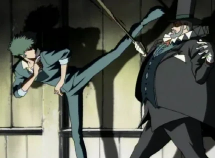 와타나베 신이치로의 카우보이 비밥 또한 감독 자신이 좋아하는 작품에 대한 레퍼런스를 비롯하여 개인의 기호로 가득한 작품입니다. 그가 첫 번째로 총감독한 애니메이션이니 만큼 비밥에 자신의 모든 것을 녹여내는 것은 당연한 일이었을지도 모릅니다. 차근차근 살펴볼까요? 우선 와타나베 신이치로가 영화를 무척이나 좋아하는 감독이라는 것을 알고 갈 필요가 있습니다. 그의 연출 특징은 2D 애니메이션에서 마치 영화와 같은 시퀀스를 사용한다는 점입니다. 이 특징은 카우보이 비밥에서도 잘 드러나서, '한 편의 영화를 보는 것 같다'는 감상이 비밥의 매력이라고 당당히 말할 수 있습니다. 하지만 비밥은 좀 더 명확한 형태의 영화 오마주가 깔려 있습니다. 바로 홍콩 영화입니다.