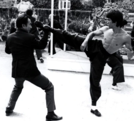주인공 스파이크 스피겔이 사용하는 무술인 절권도는 홍콩 액션 영화의 상징인 이소룡(브루스 리)의 무술입니다. 절권도의 특징인 간결하게 절제된 움직임과 유연하면서도 단호한 타격은 비밥 1화를 틀자마자 상반신 탈의를 한 채 수련을 하는 스파이크에게서 바로 찾아볼 수 있습니다. 이 작품의 커다란 매력 중 하나인 대인 격투 액션 외에도 시대를 풍미한 슈퍼스타의 흔적은 작품 이곳저곳에 산재해 있습니다. 당장 2화에서 등장하는 거구의 악역 압둘 하킴은 <사망유희>에 등장하는 카림 압둘 자바를 모티브로 하고 있습니다. 같은 화에서 스파이크가 가게의 쌍절곤을 보고 '<맹룡과강> 모델이군'이라고 하는 장면도 있습니다. 8화에서는 스파이크의 제자를 자처하는 등장인물에게 스파이크가 '물이 되어라'라고 하는데, 이것은 이소룡의 인터뷰에서 나온 전설적인 어록입니다. 이렇게만 봐도 와타나베 신이치로가 이소룡을 얼마나 사랑하는지 짐작이 됩니다.