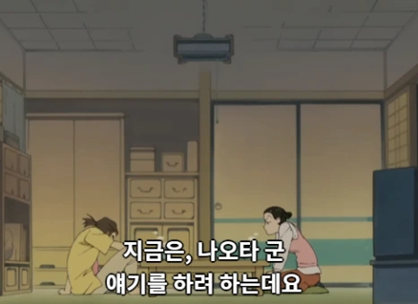그런 나오타의 성장은 최후반부, 가장 바보 같은 어른이었던 나오타의 아버지를 통해 암시됩니다. 하루코와 떠나는 바람에 등교하지 않는 나오타로 인해 담임 선생님이 가정에 방문하게 됩니다. 하지만 나오타의 아버지는 자신이 초등학생 시절 자신이 관리 담당을 맡아 학급에서 기르던 햄스터 이야기만 합니다. 나오타의 이야기를 하고 있다는 담임 선생님에게 나오타의 아버지는 괜찮다고 말하며, '햄스터와는 다르게 멋대로 성장해버리니까요'라는 말을 덧붙입니다. 그의 말대로 일련의 사건을 겪은 뒤 나오타는 성장했습니다. 자신의 이름에 들어가는 한자처럼 솔직하게 살 수 있게 됐습니다.
