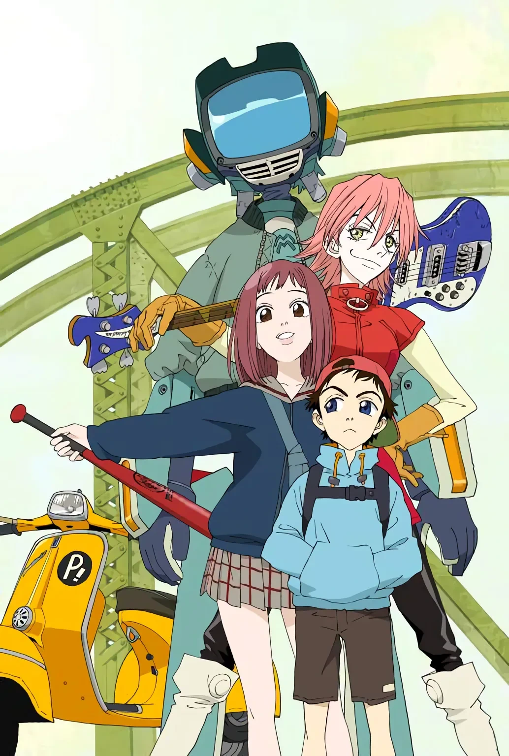 상술한 것처럼 기타는 청춘의 상징입니다. 핵심적인 주제로 청춘을 다루고 있는 프리크리에 있어, 록 음악 OST는 단순히 감독의 취향이나 실험적 시도를 넘어 작품 그 자체를 표현하는 훌륭한 방식 중 하나입니다. 언제나 얼렁뚱땅, 얼기설기 정신없게 엮인 것 같은 프리크리지만, 다이나믹한 카메라 워크나 격한 움직임의 작화, 로큰롤 사운드 등 그 시끄럽고 난잡한 모든 요소들이 촘촘하게 하나의 작품으로 짜여 있다는 점이야말로 프리크리의 매력이라 할 수 있습니다.
