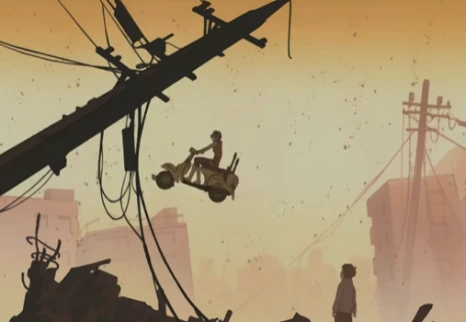 하지만 나오타는 하루코와의 교류를 통해 점차 변하게 됩니다. '머릿속이 텅 빈 채'하는 스쿠터 드라이브, 대뜸 떠나는 것, 맛없는 라면을 먹어 보는 것. 나오타로서는 이해할 수 없는 모든 행동들의 이유는 하루코의 한 마디로 요약됩니다. '뭔가 재밌잖아', 자신의 마음에 솔직한 대답입니다. 돌이켜 생각해 보면 프리크리 속 어른들은 단순히 바보가 아니라 자신의 마음에 솔직한 것일 수도 있습니다. 좋아하는 걸 좋아한다고 말하는 등 감정을 일체 숨기지 않습니다. 나오타의 '나오'는 솔직하다는 한자인 直이라고 하지만, 그와 상반되게 나오타는 솔직하지 않았습니다. 그리고 이런 솔직함은 아이의 미덕이기도 합니다. 어른이 되면 다양한 사정에 얽혀 자신의 마음을 속이게 되는 반면 순진무구한 아이들은 그럴 일이 없습니다. 하지만 프리크리에 등장하는 어른들은 아이처럼 순진하고 솔직합니다. 반면 아이인 나오타야말로 솔직하지 않습니다.