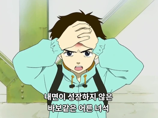 때문에 나오타는 1화에서 마미미가 권한 시큼한 주스를(받아 마시면 마미미와의 간접 키스가 됨에도 불구하고) 바닥에 던져버립니다. 언제나 시니컬한 시선으로 어른들을 바라보며 냉소와 비판을 아끼지 않습니다. 즉, 나오타가 어른에게 품고 있는 감정의 근간은 혐오입니다. 정확히는 바보 같은 어른을 향해서 말입니다. '절대 저렇게는 되지 않겠다'는 나오타의 의지는 작품 속에서 쉽게 찾아볼 수 있습니다.