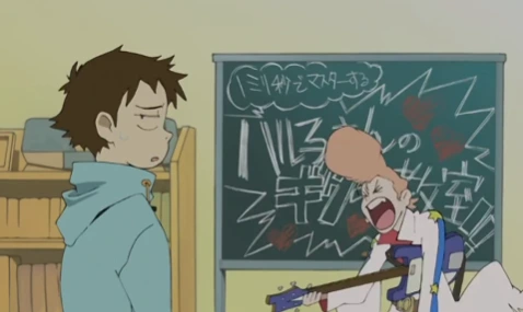 마미미는 고등학생이긴 하지만 엄청나게 신 주스를 마십니다. 나오타의 가족들은 어른의 맛이랍시고 엄청나게 매운 카레를 먹어댑니다. 나오타의 아버지 또한 하루코처럼 얼빠진 행동만 일삼는 어른입니다. 목욕을 하는 나오타의 학급 친구에게 샴푸 햇을 주는 한편, 가십 거리와 음모론으로 가득한 잡지를 찍어내 구멍가게에 판다든가, 만화와 관련된 개그를 쉴 새도 없이 떠들어댑니다. 나오타의 담임 선생님은 열심히 하려는 노력이 학생들에게 제대로 통하지 않으며, 그녀의 자동차는 늘 부서지고 마는 역할입니다. 이후 나오타에게 접근하는 아마라오 관리관 또한 어른스러운 면모를 보이는 것 같다가도 붙이고 있던 눈썹이 떨어지면 한없이 초라해지고 맙니다.