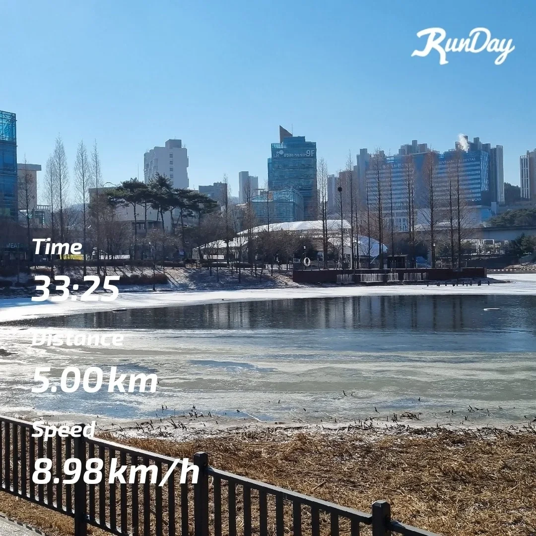 영하 9도의 날씨에 흘러내리던 땀이 순간 얼어붙어 버렸네요. 달린 후 얼어붙은 땀에도 몸은 그리 추위를 느끼지 않습니다. 달리기를 시작하기 전엔 겨울마다 등골이 오싹함을 느끼고 추위를 잘 타던 나였는데 이젠 영하의 날씨에도 추위가 내 달리기 루틴을 막지는 못합니다. 추위에 대한 두려움 보다는 달리고 나서의 기쁨과 활력이 훨씬 크기 때문이 아닌가 합니다.