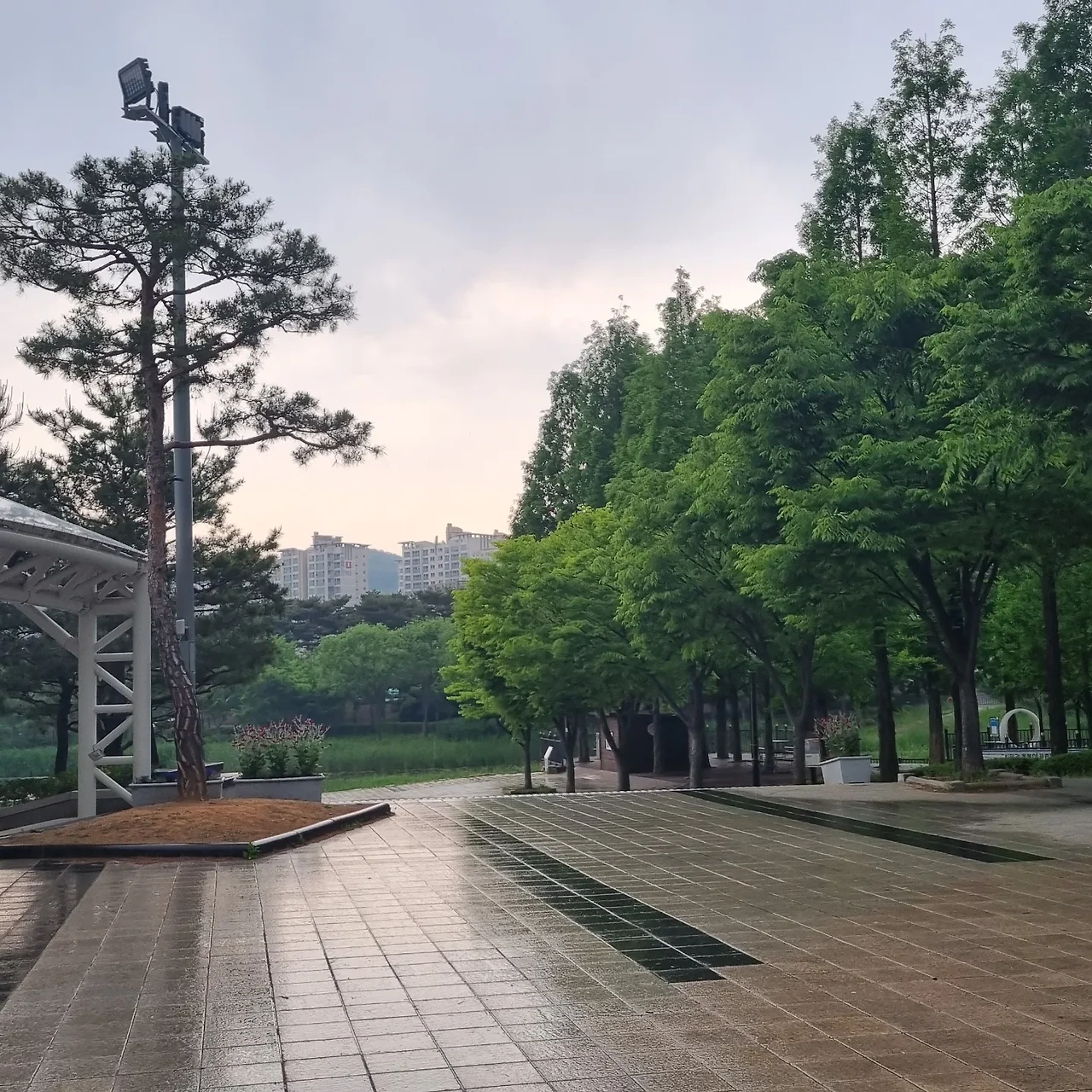 가문 날씨가 계속되어 오랫만에 온 비가 반가웠다. 조금 더 내리길 바랬는데 금방 그쳐서 조금 아쉬웠다. 예전엔 비가 오면 비를 피하기 일쑤였지만 이제 비를 맞으며 달리는 것이 내게 작은 행복이 되었다. 비가 오면 더 달리고 싶은 마음까지도 생겼다.
