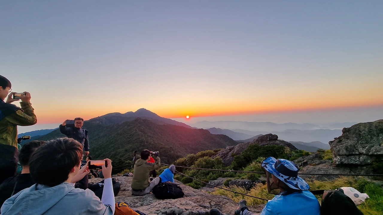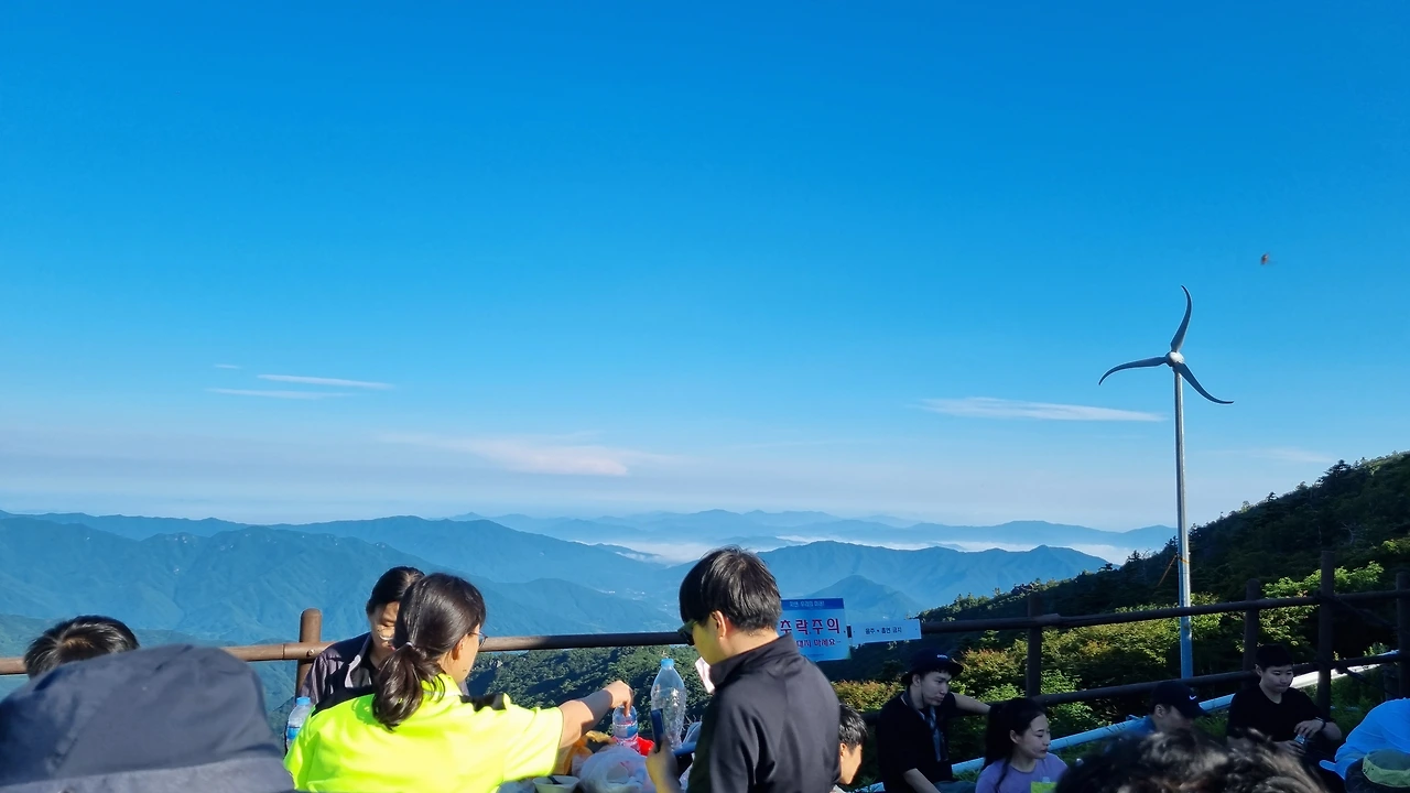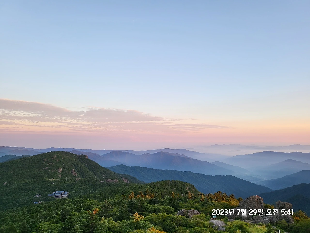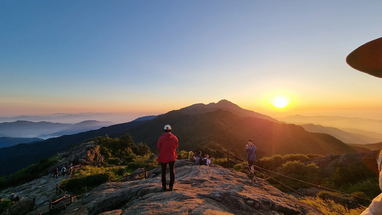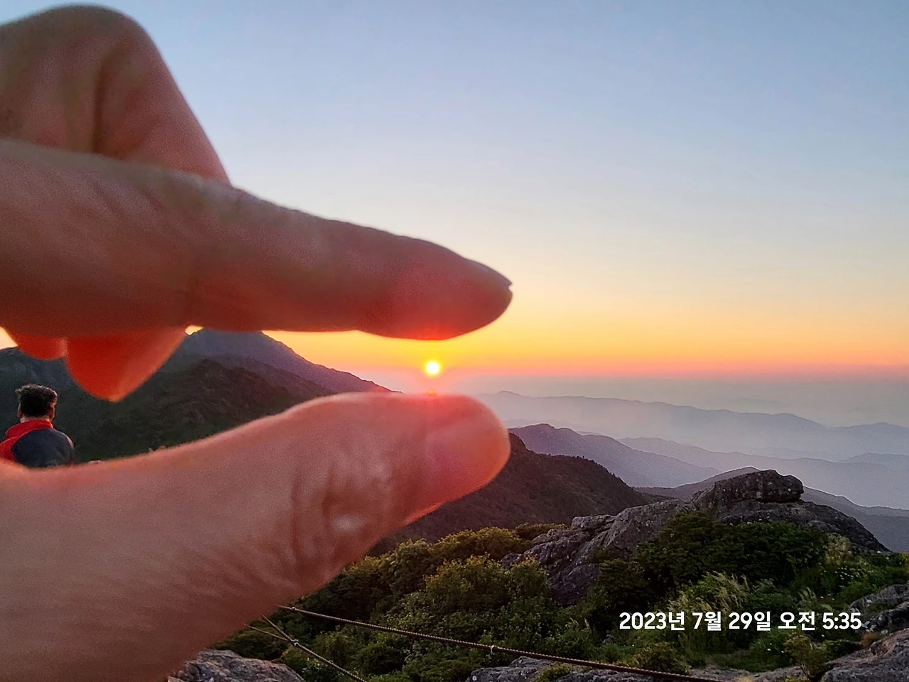 어둠속을 헤치며 다른 등산객들이 향하는 곳으로 발걸음을 함께했더니촛대봉에 다다랐다. 천왕봉에서의 일출을 볼 수 있음 좋았겠지만 시간상우리는 촛대봉에서 일출을 맞이하였다.