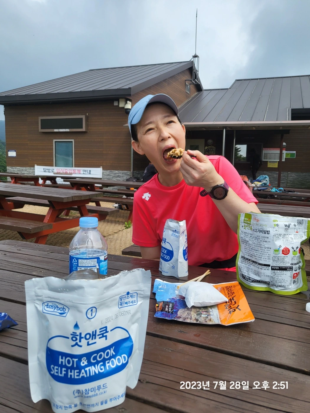 샘물로 끈적이는 땀을 씻어내고 목음 축이고 비어버린 물병에 물을 채우고 점심식사를 했다.