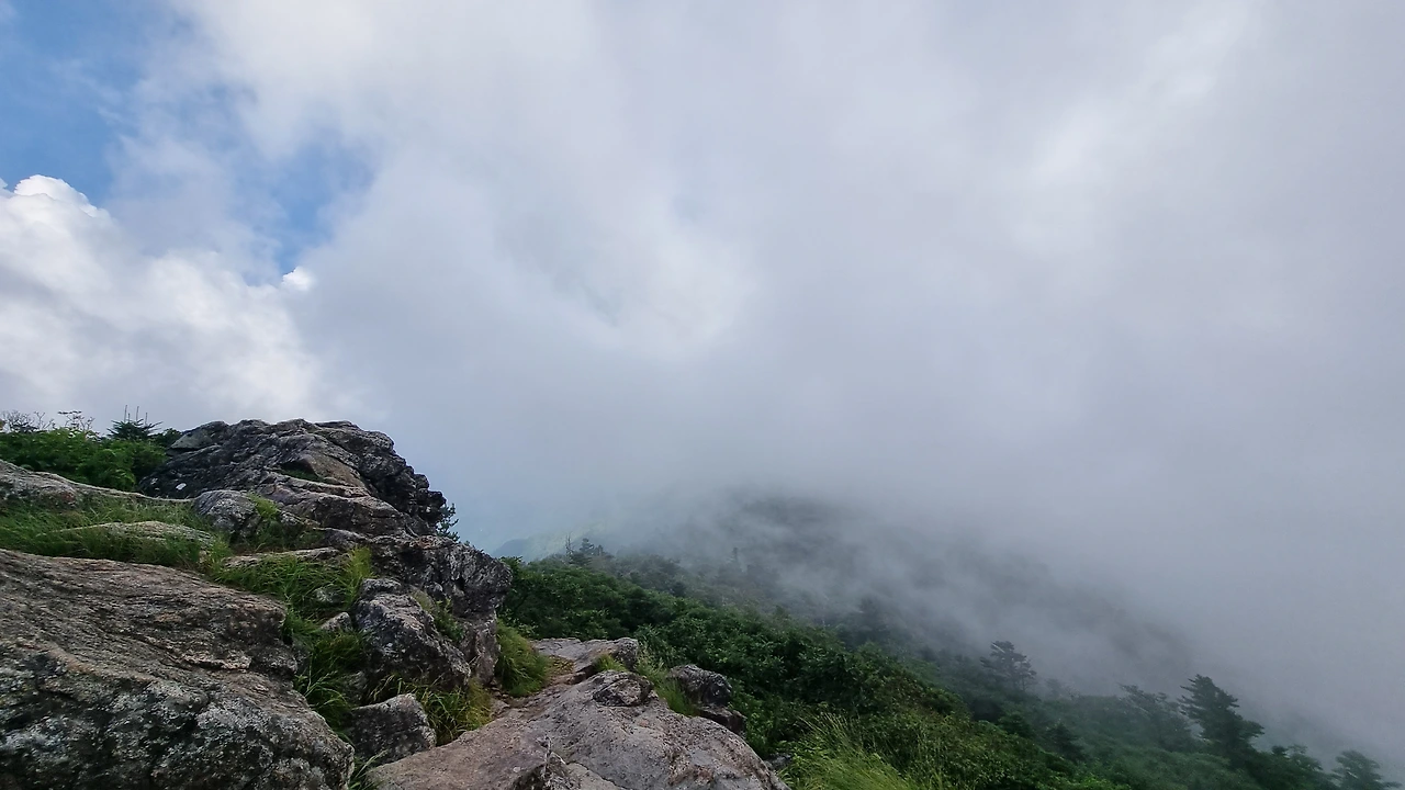 오르락 내리락 쉽지 않은 코스였지만 여기까진 할만 했던 것 같다. 점심은 친구가 준비해온 전투식량으로 맛있게 해결하고 걸을 땐 더웠지만 머물러 있으면 추위가 느껴져 한 낮이었지만 산 아래서의 무더위를 우리는 상상도 할 수 없었다.