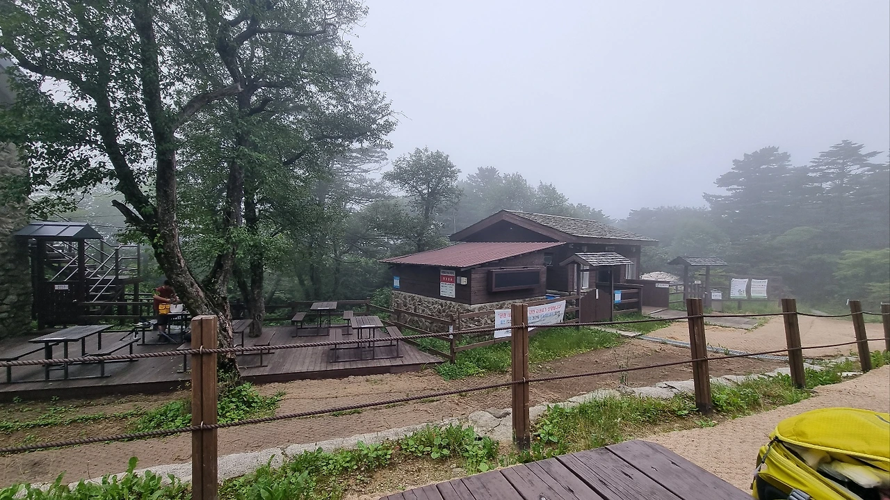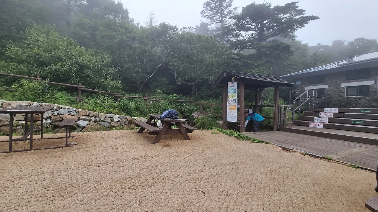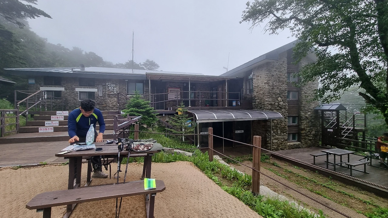 연하천 대피소에 식사를 하고 쉬어갈 수 있는 테이블이 있다.
