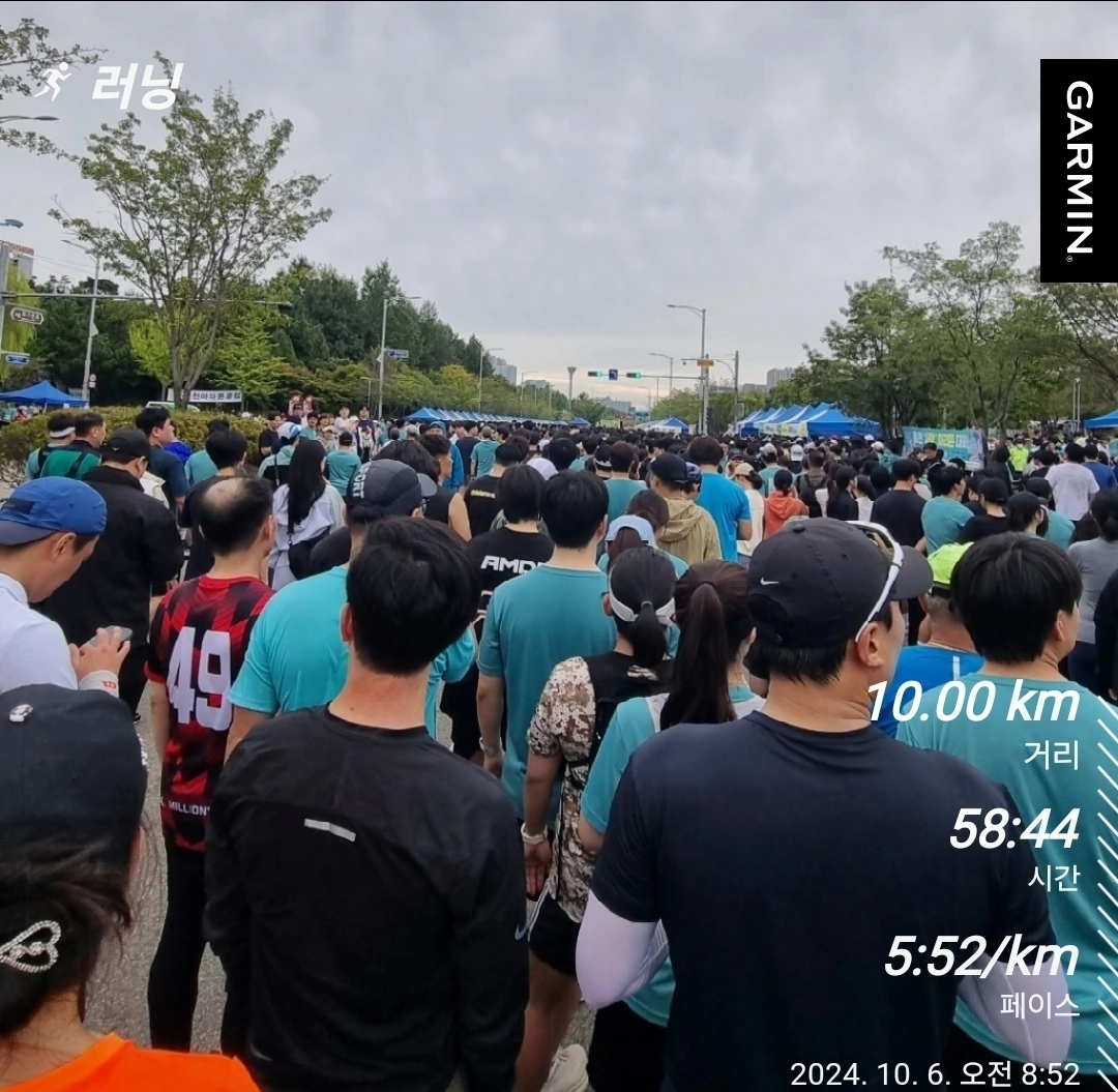 그런데 대회 당일 나는 태어나 처음으로 한 시간 이내에 10키로를 달려냈다. 대회 에너지가 있다해도 57분 정도에 달려낸게 참 신기했다.