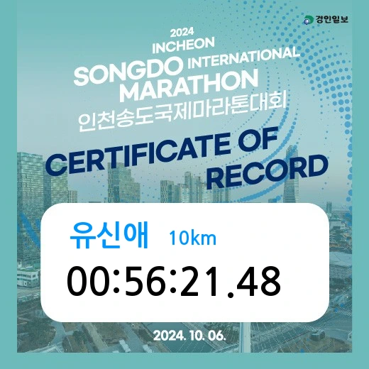동아 마라톤 기록증 제출을 위해 10키로, 하프, 풀 대회를 각각 하나씩 신청했다. 9월말에 있는 10키로 대회를 신청했었는데 대회가 취소되는 바람에 다시 급하게 인천송도 국제마라톤 10키로를 신청했다.