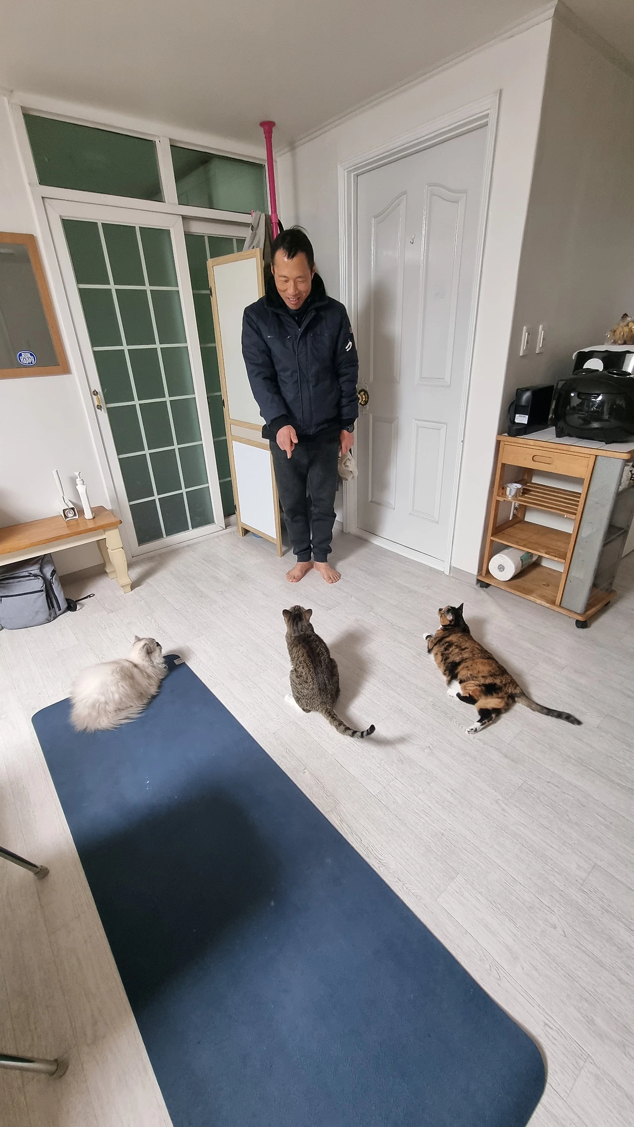 지금은 아이들이 나가서 살고 있어 사람 수보다 고양이 수가 많다. 가끔 내가 앉을 의자에 드러누워 비켜주지 않거나 유일한 출입통제를 하는 안방에 머리를 들이밀고 버티기도 한다.