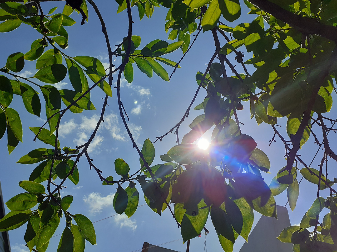 브런치 by 달님 《매거진_단독주택에서 살아가기》 04. 슬기로운 마당생활 5월의 어느 날 감나무 사이의 하늘 그리고 햇살...