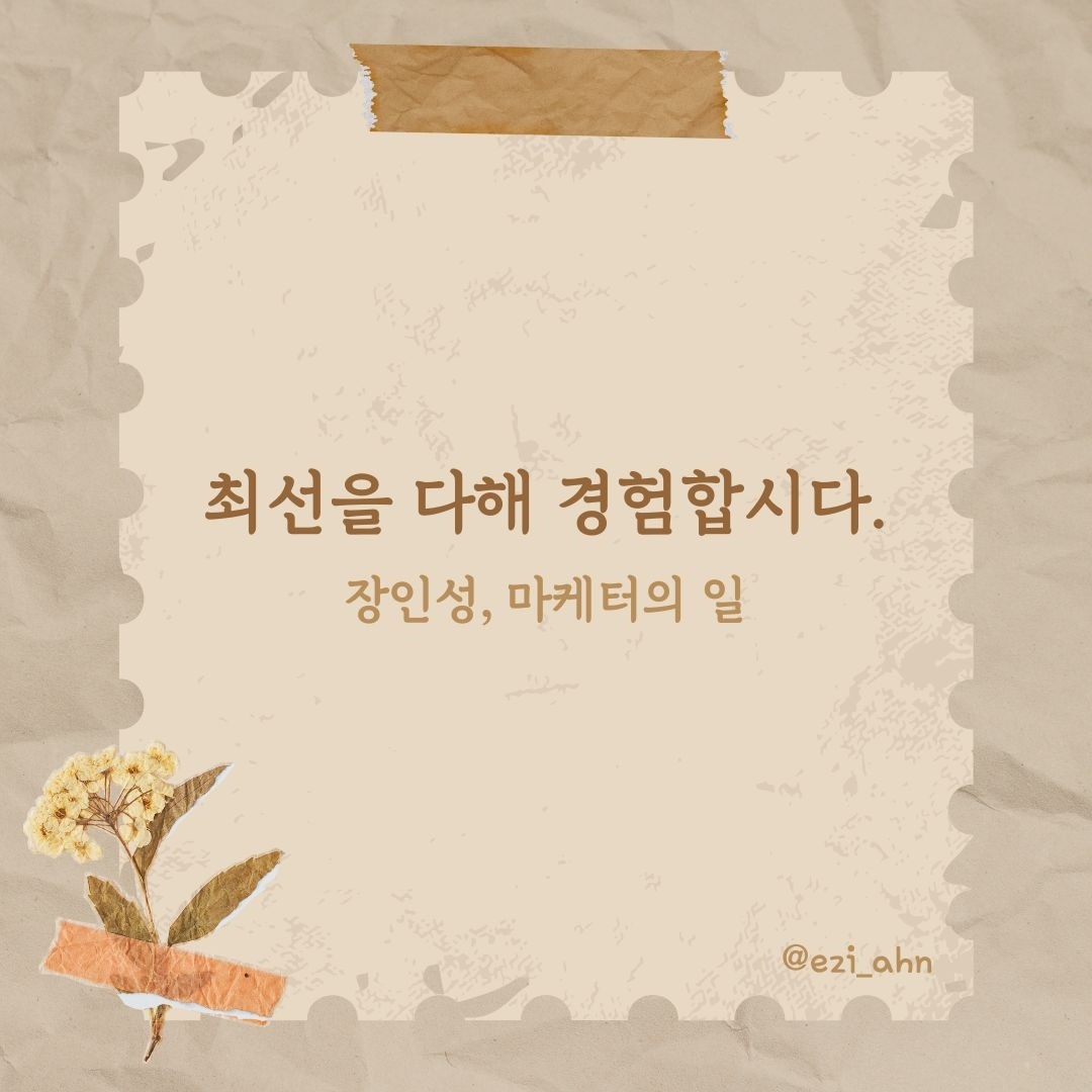 이 문장을 여러 번 곱씹다가, 국어사전에서 '자산'의 뜻을 찾아보았다. 자산이란 '개인이나 집단이 미래에 성공하거나 발전할 수 있는 바탕이 될 만한 것을 비유적으로 이르는 말'이라고 한다. 최선을 다해 많이 경험합시다,라는 말로 끝나는 말에 나는 어떤 사람인가 생각해 보았다.
