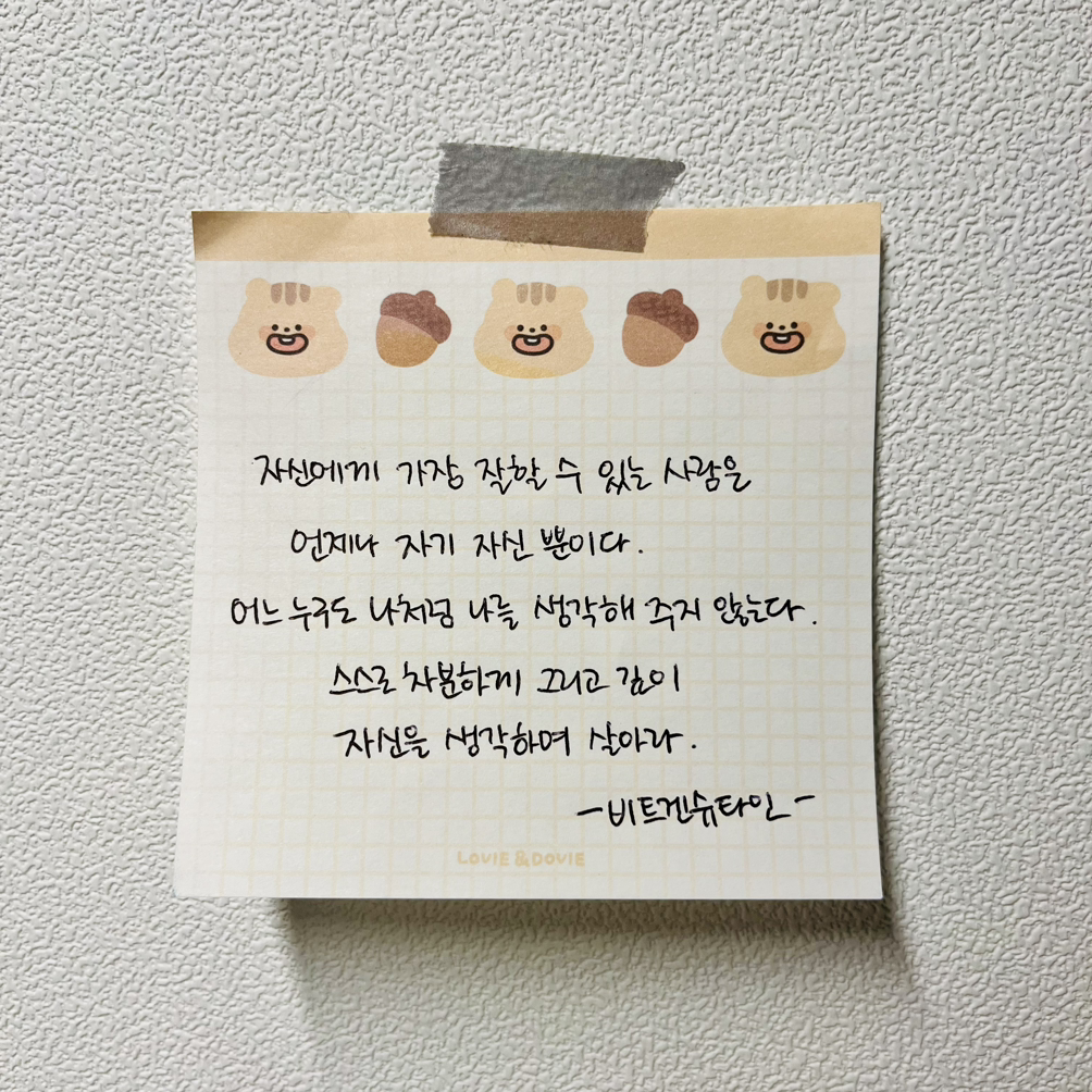 너무 많은 시간을 다른 사람의 삶을 바라보는 데 혹은 다른 사람의 의견을 듣는 데 쓰고 있다면, 잠시 멈추고 내 목소리에 귀를 기울여보자. 잊지 말자. 나만큼 나를 생각해 주는 사람은 나밖에 없다.