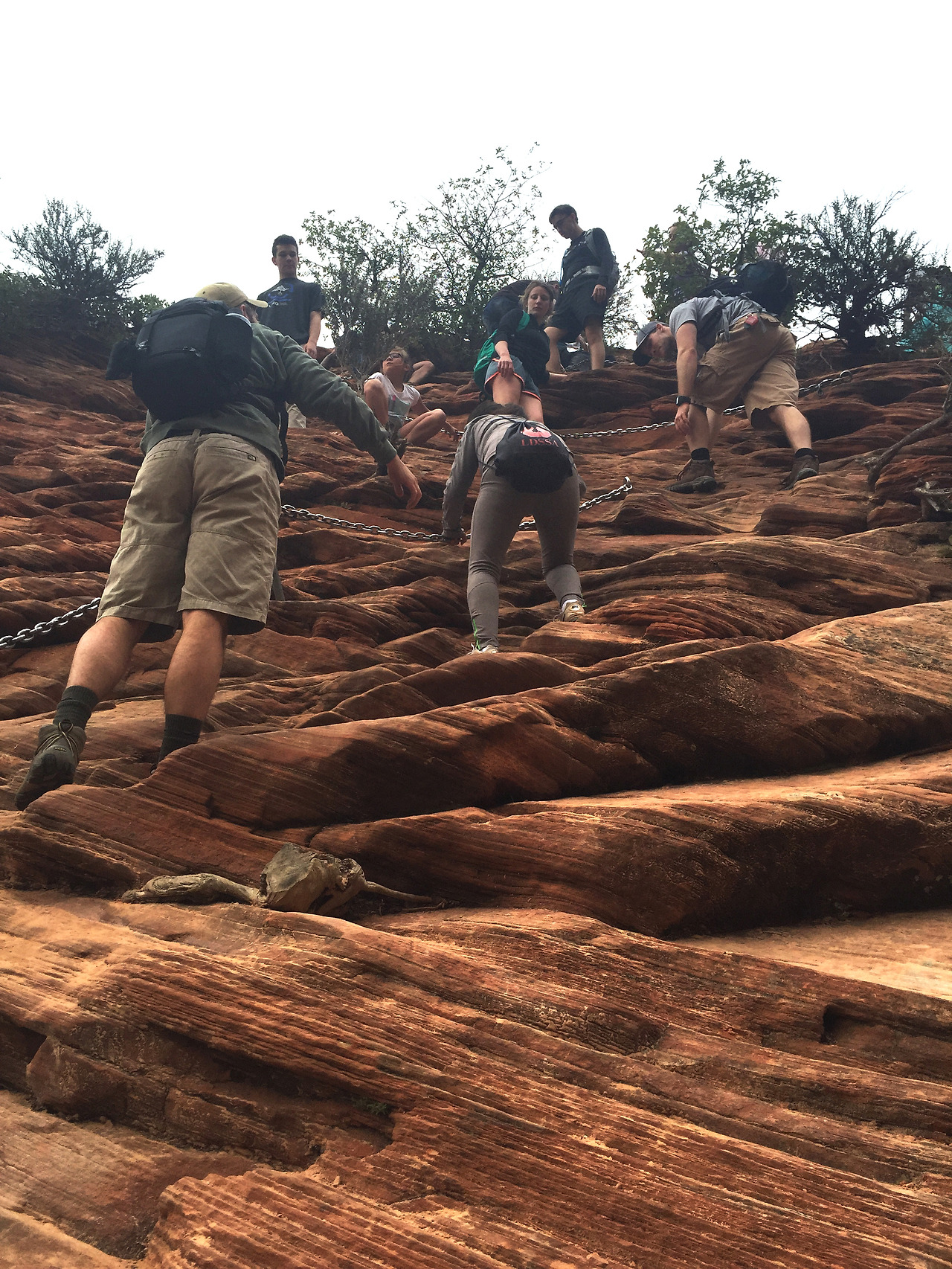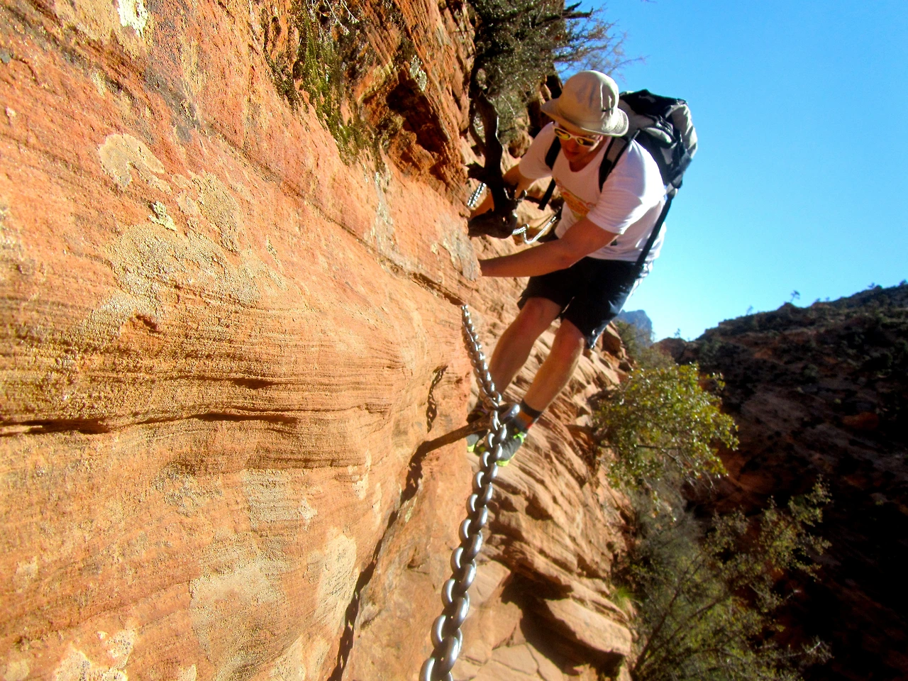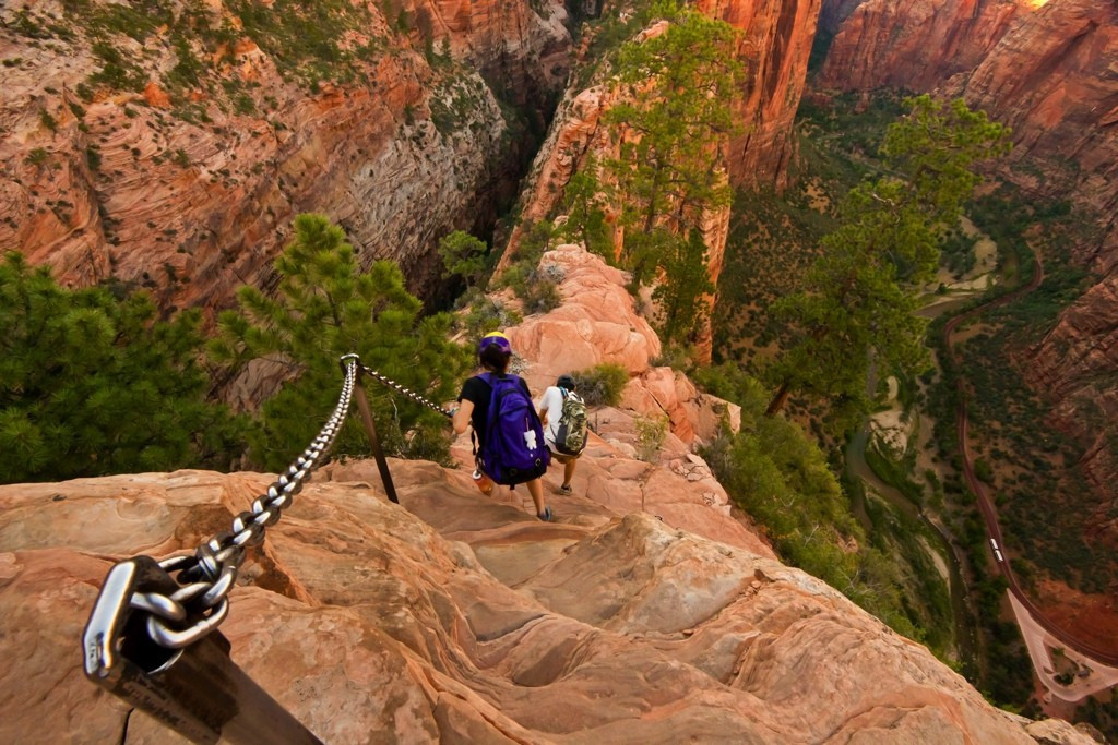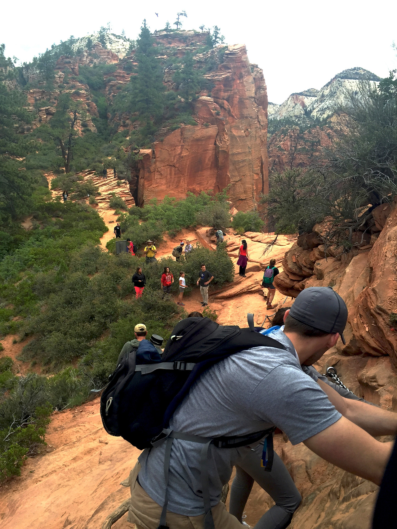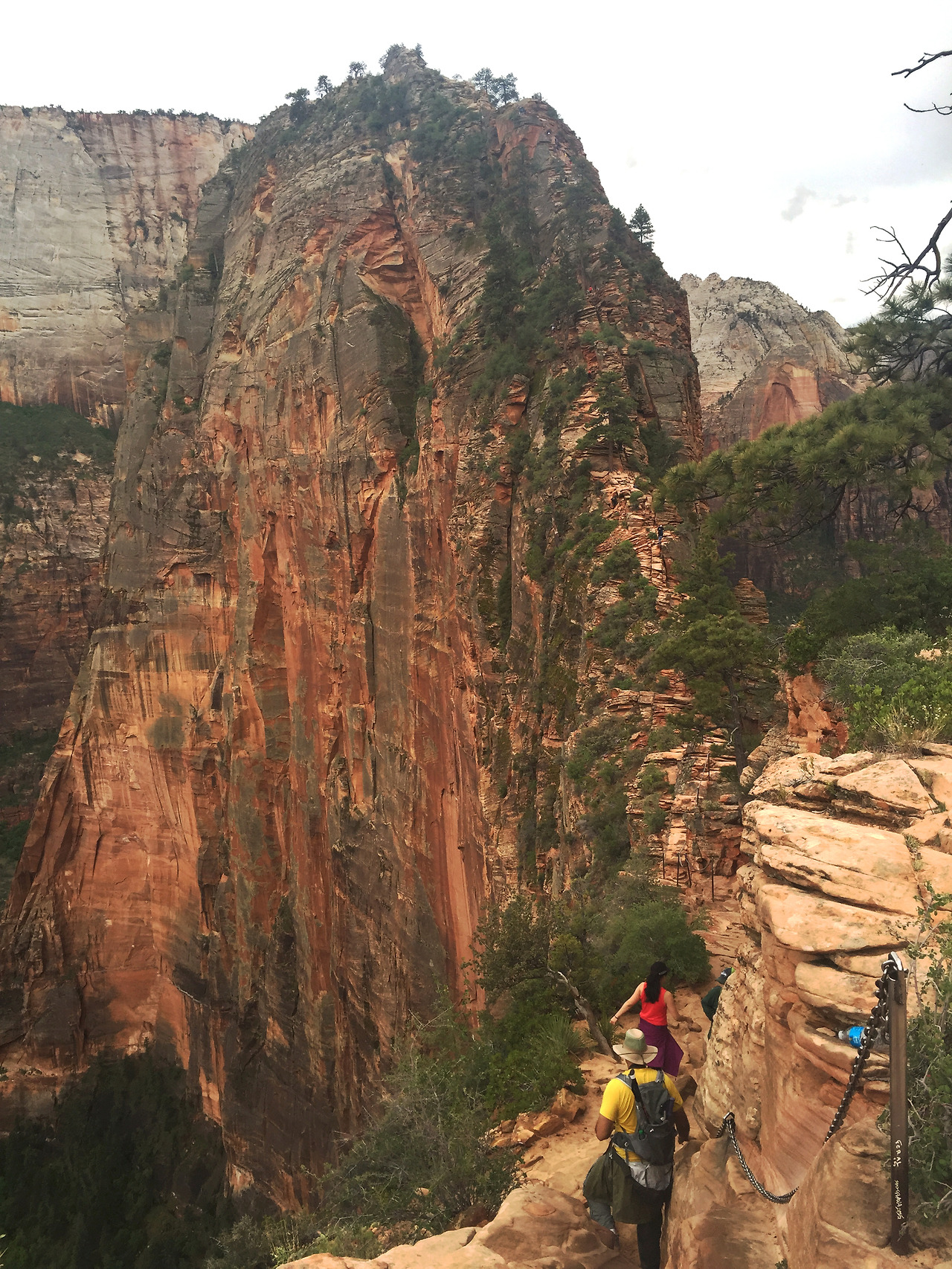 - 쇠사슬을 잡고 올라가는 앤젤스 랜딩 트레일. 고소공포증이 심하고, 심장이 허약하다면 비추. 하지만 다이내믹한 트레일을 좋아하고 도전하는 것을 좋아한다면 강추. 그 끝엔 천국의 문이 보인다.