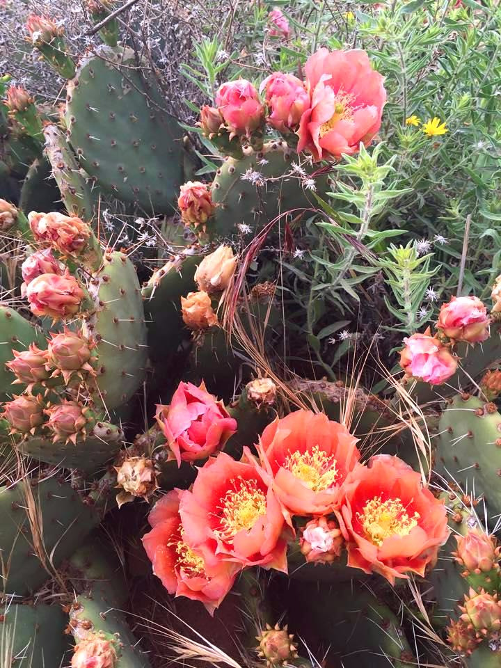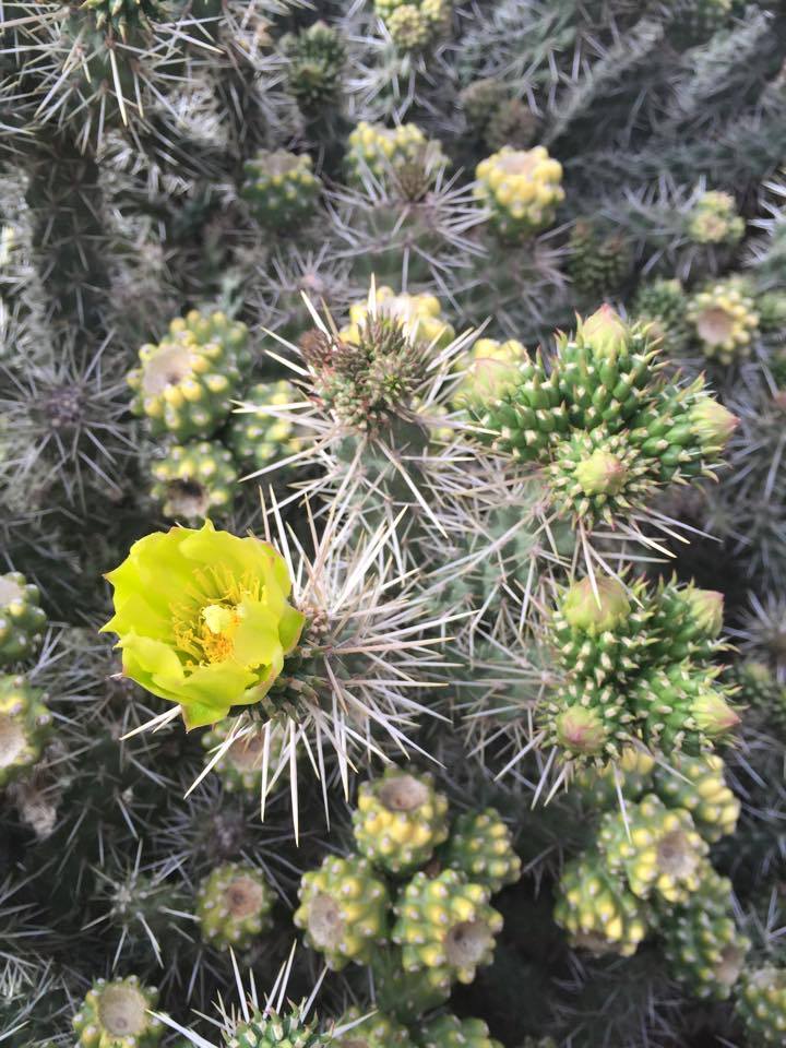 이게 갑자기 무슨 소리래? 얼마나 어렵다는 거야. 별로 안 힘들어 보이는데... 그래서 나는 알았다고 대답했다. 처음 시작은 평지인 데다가 걷는 내내 옆에 풍경이 너무도 좋아서 정말 즐겁게 이야기를 하며 걸을 수 있는 길이다. 동네 뒷산을 걷는 느낌인데 바로 옆은 장관이 펼쳐져서 노력 투자 대비 최고의 경치랄까. 가는 내내 건조한 이곳 환경 답게 곳곳에 선인장이 많은데, 여름이라 선인장 꽃들이 이곳저곳에 많이 피어있었다. 노란 꽃, 분홍꽃, 연두색 꽃, 색깔 별로 다양하게 펴 있어 너무 신기했다. 예전에 드라마 '파스타'를 보며, 선인장도 꽃이 피는구나 처음 알았었는데 실제로 이곳저곳에 만개한 야생 선인장 꽃을 보니 신기할 따름.