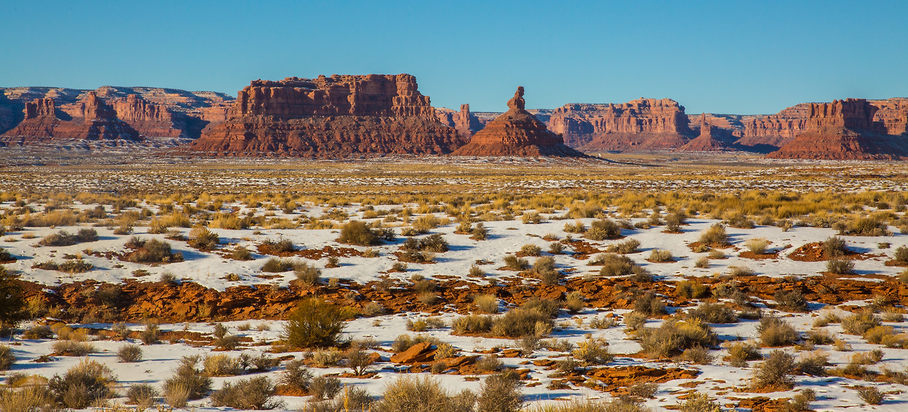 이번에 마지막 편으로 소개하고 싶은 곳은 바로 '밸리 오브 더 가즈(Valley of the Gods)', 신들의 계곡이다. 신들의 계곡은 이 근방 더 유명한 곳, 모뉴먼트 밸리(Monument Valley) 근방에 있는 곳인데 작은 버전의 모뉴먼트 밸리라고 생각하면 될 것이다. 모뉴먼트 밸리는 유명한 만큼 관광객 수도 많고, 공원 자체를 네이티브 아메리칸들이 관리하기 때문에 입장료를 내야 한다. 하지만 이곳은 로컬 도로를 타고 가다가 갑자기 오프로드로 빠지는 곳에 있다. 입장료도 없고 그냥 먼지 혹은 그날 날씨에 따라 진흙길, 눈길인 곳이다. 규모 또한 모뉴먼트 밸리보다는 작지만 그렇다고 아주 작은 것은 아니다. 다만 처음 보자마자 느끼는 첫인상이 '신성하다'는 느낌이어서 그 이름 또한 '신들의 계곡'이 아닐까 생각된다.