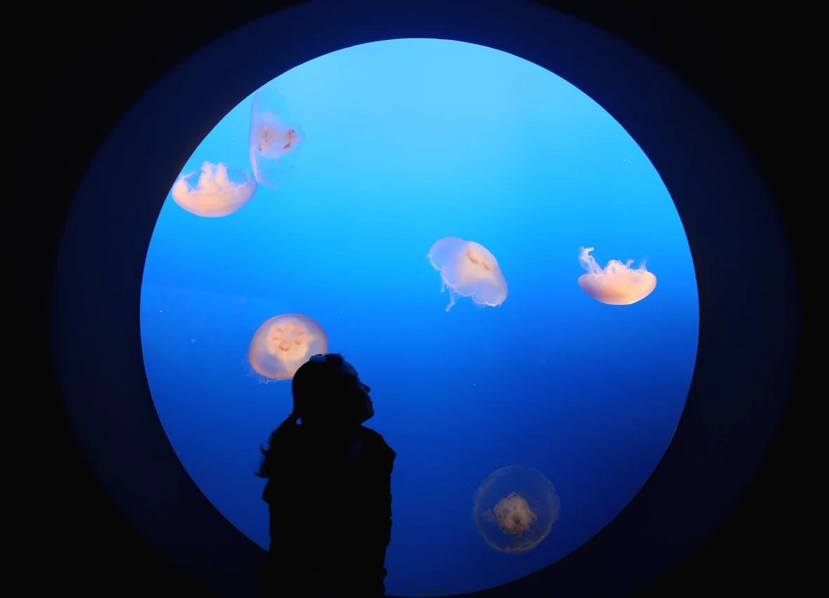 이 몬터레이 수족관의 또 하나 자랑은 바로 해파리(jelly fish)이다. 엥? 웬 해파리? 인가 싶은데, 정말로 많은 종류의 해파리가 있다. 그것도 엄청나게 큰 수조 통에. 그래서 해파리가 정말 내 옆에 있는 기분이 든다. 발길질을 하며 앞으로 계속 나아가는데 이게 정말이지, 리드미컬한 움직임에 아름답다는 느낌이 든다. 색도 계속해서 변화하는데 내가 마치 자꾸 바다 깊은 곳으로 빨려 들어가는 듯한 느낌이다. 정말 각양각색의 해파리들이 내 곁에서 계속해서 춤을 추는데, 보고 있으면 굉장히 흥미롭다.