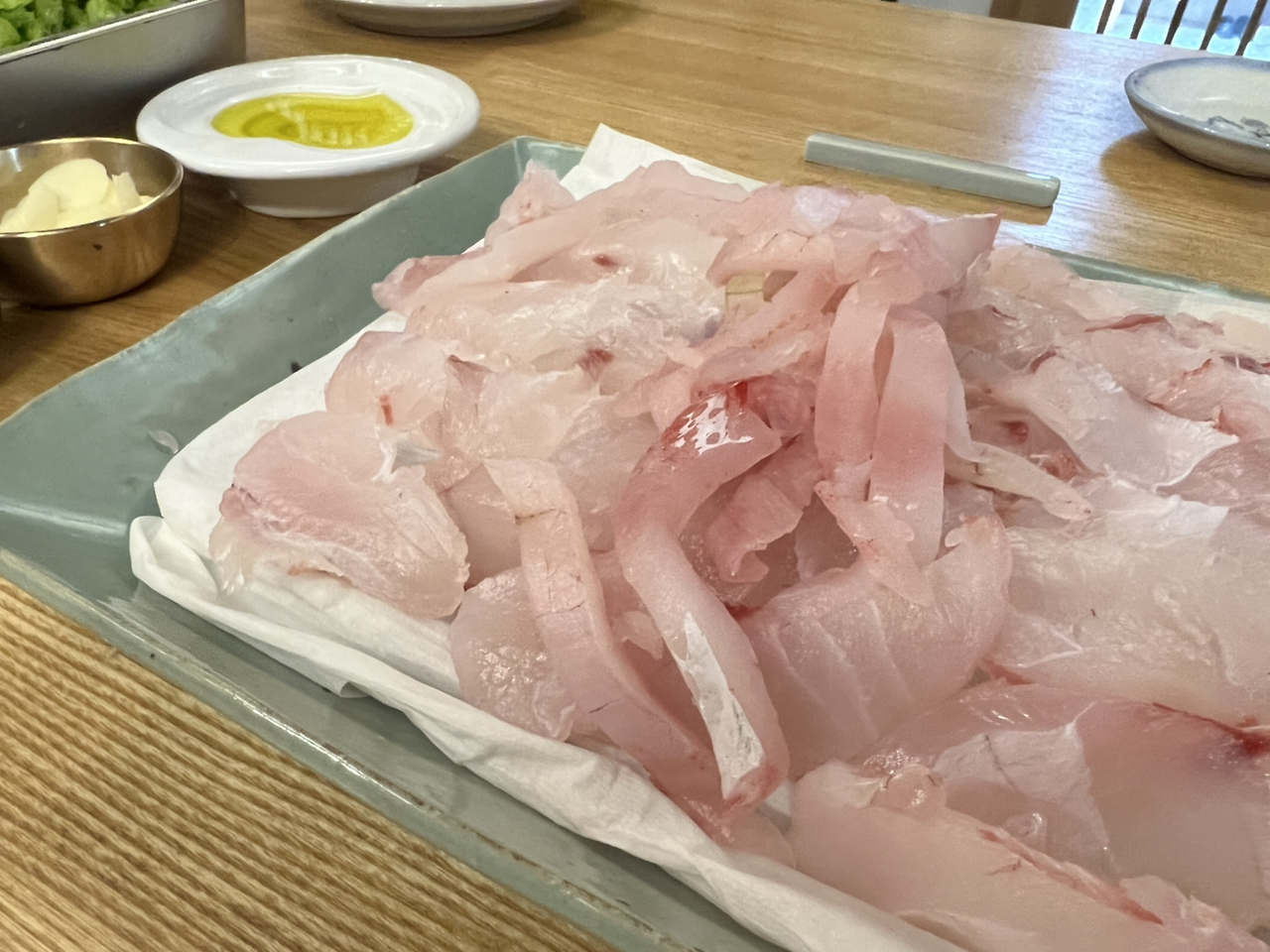 나는 민어는 역시 탕이고 그다음은 전, 회가 3위였는데 부래와 껍질을 소금 살짝 넣어 올리브 오일에 구운 것 맛을 보고 4위로 밀렸다.