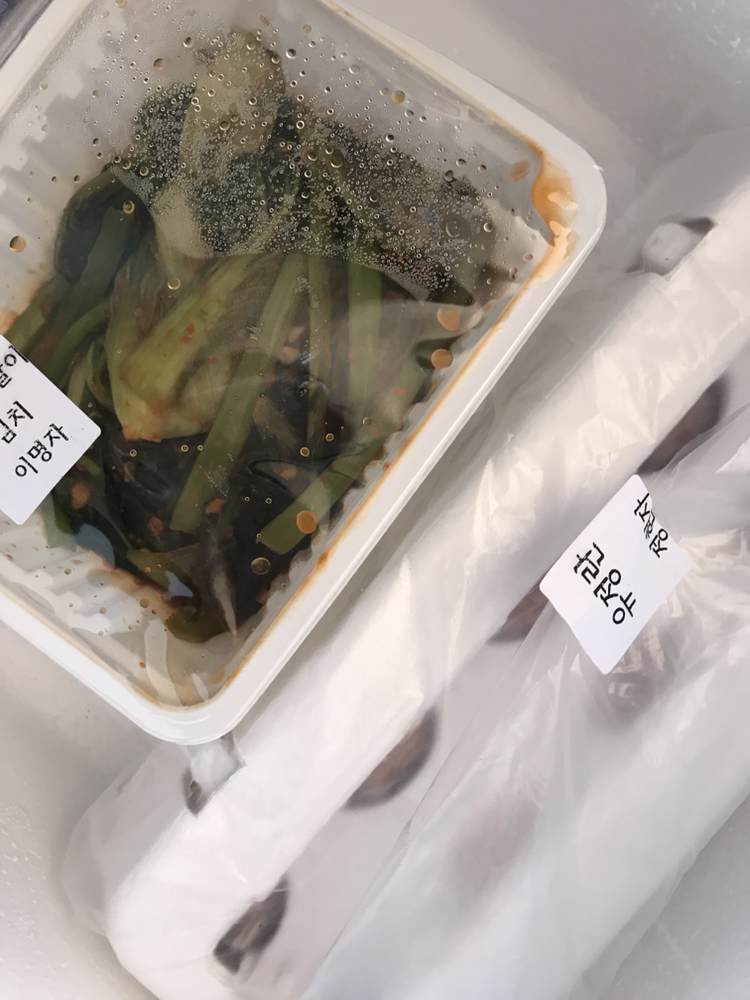단, 유정란, 요구르트, 두부 그리고 떡이나 군것질거리, 간단한 김치는 빠지지 않아요. 그리고 나머지는 대체로 제철 식재료지요.