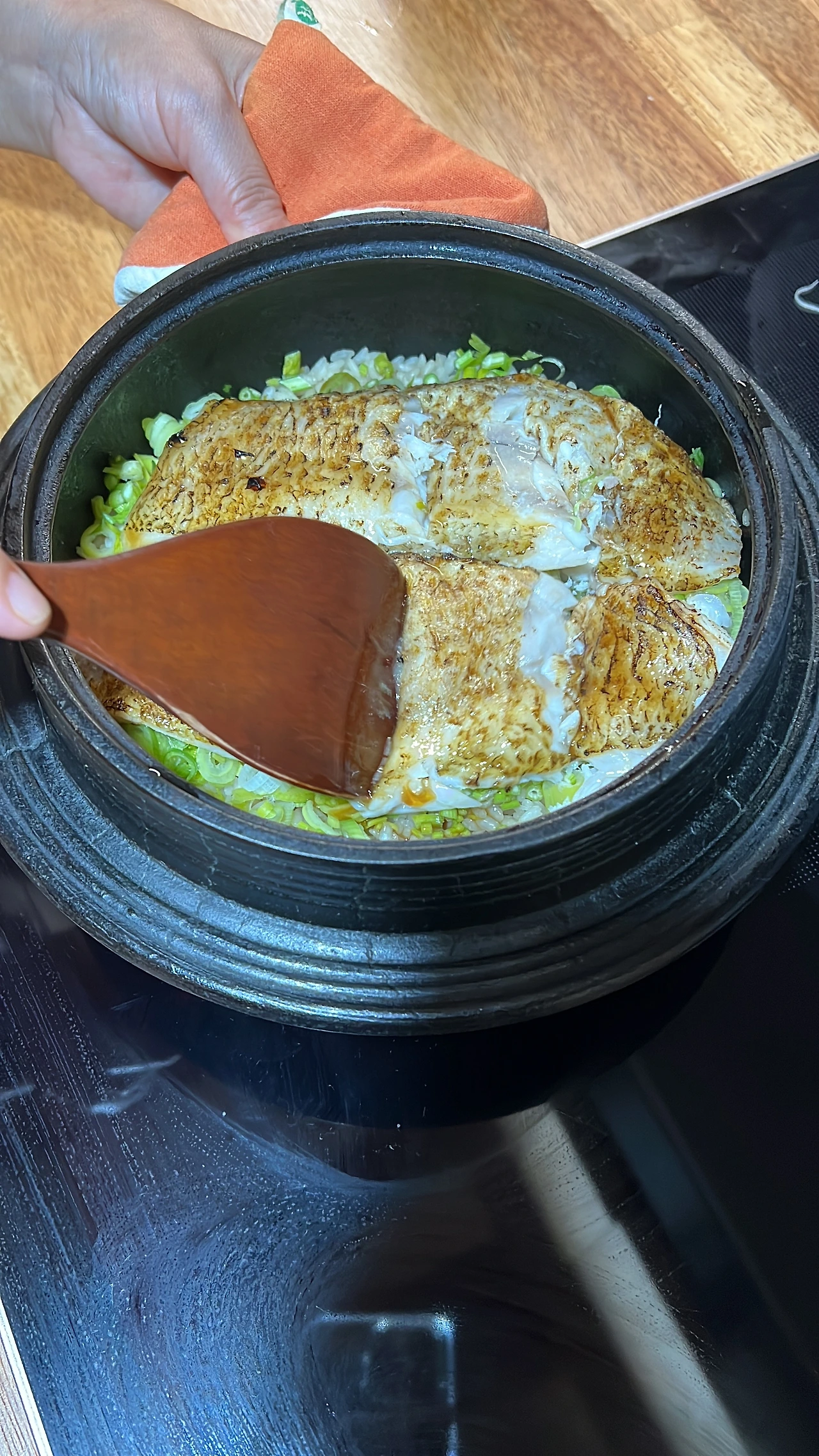 단, 이 과정이 너무 복잡하면 처음부터 생선을 얹어 밥을 해도 된다. 그런데 그러면 생선의 탄력이 너무 떨어질 것이다.