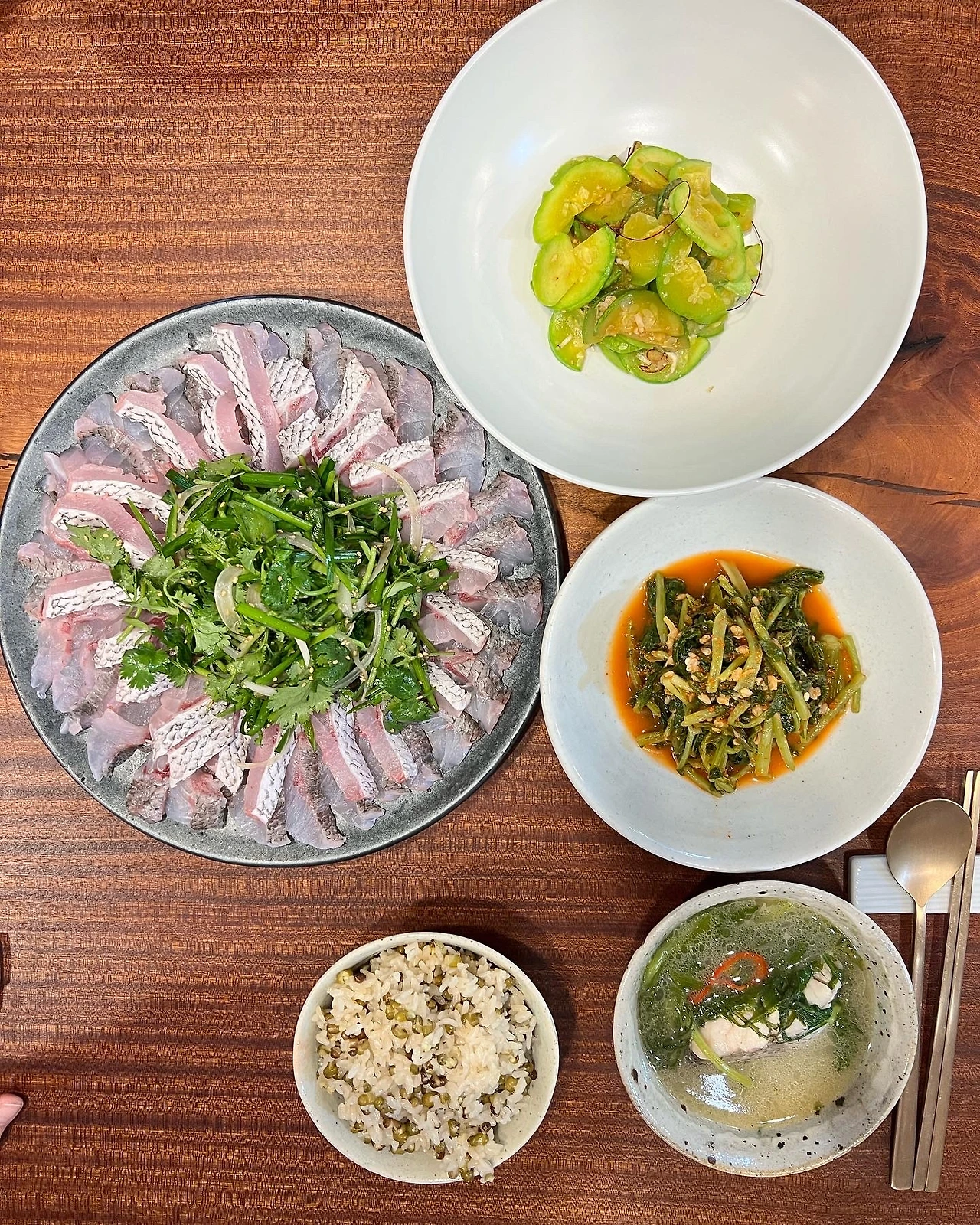 고기를 끊은 후 우리 집 식비는 더 늘었다. 고기를 먹던 날에 대체로 해산물로 대체 중인데 좋은 생선은 소나 돼지고기보다 가격이 높다. 오늘만 해도 그렇다. 보통 초복엔 닭요리를 해 먹었다. 그런데 오늘은 금태 솥밥을 했다. 세 장 뜨기로 손질한 크기가 큰 금태 한 마리를 85,000원에 샀다. 한 끼, 셋의 식비가 어마어마한 것이다.