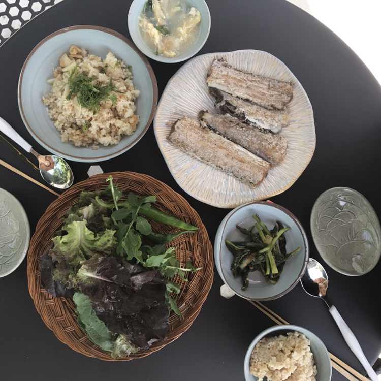 엊그제는 볶음밥을 하더라구요. 그중 마늘볶음밥을 오늘 해봤습니다. 시판용간장대신 정어리 액젓을 버터는 저염으로 사용했습니다