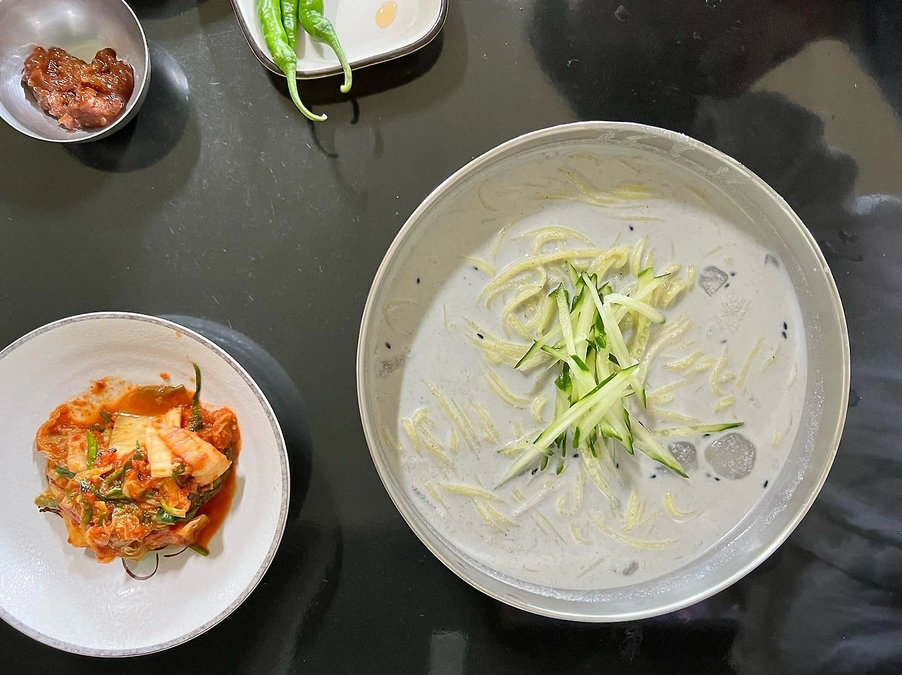 경주와 포항의 중간쯤에 있다. 다산 손칼국수, 콩국수 너무 딱 내 취향이다. 꾸덕하지 않고 목으로 부드럽게 넘어간다. 잔치국수 양은 무척 많다. 김치가 무척 맛있도 매운고추는 끝내주게 매웠다. 고추지 무침은 달콤했다. 칼국수 먹고 싶었지만 더운 여름엔 칼국수를 안하신단다. 동네 분들이 다니는 소박하고 귀한 음식점이다. 이런 음식점은 오래 오래 영업을 했으면 좋겠다.