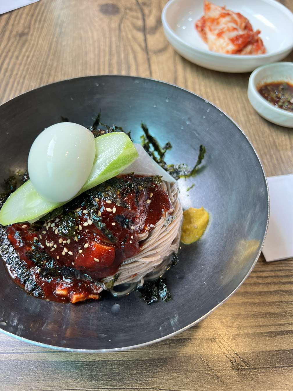 이 수업을 위해 청주에 갈 땐 무척 일찍부터 움직였다. 그래서 이제 북청주와 청주 북부 터미널, 오창도서관과 오창 호수도서관이 다르다는 것쯤은 알게 되었다. 마지막 방문을 앞두고 점심 식사를 같이 하자고 하셔서 흔쾌히 그러자고 대답했다. 우리 부부가 육류를 먹지 않는다는 것을 아시고 막국수는 괜찮냐 물어봐 주셨는데 그 성의가 너무 감사했다.