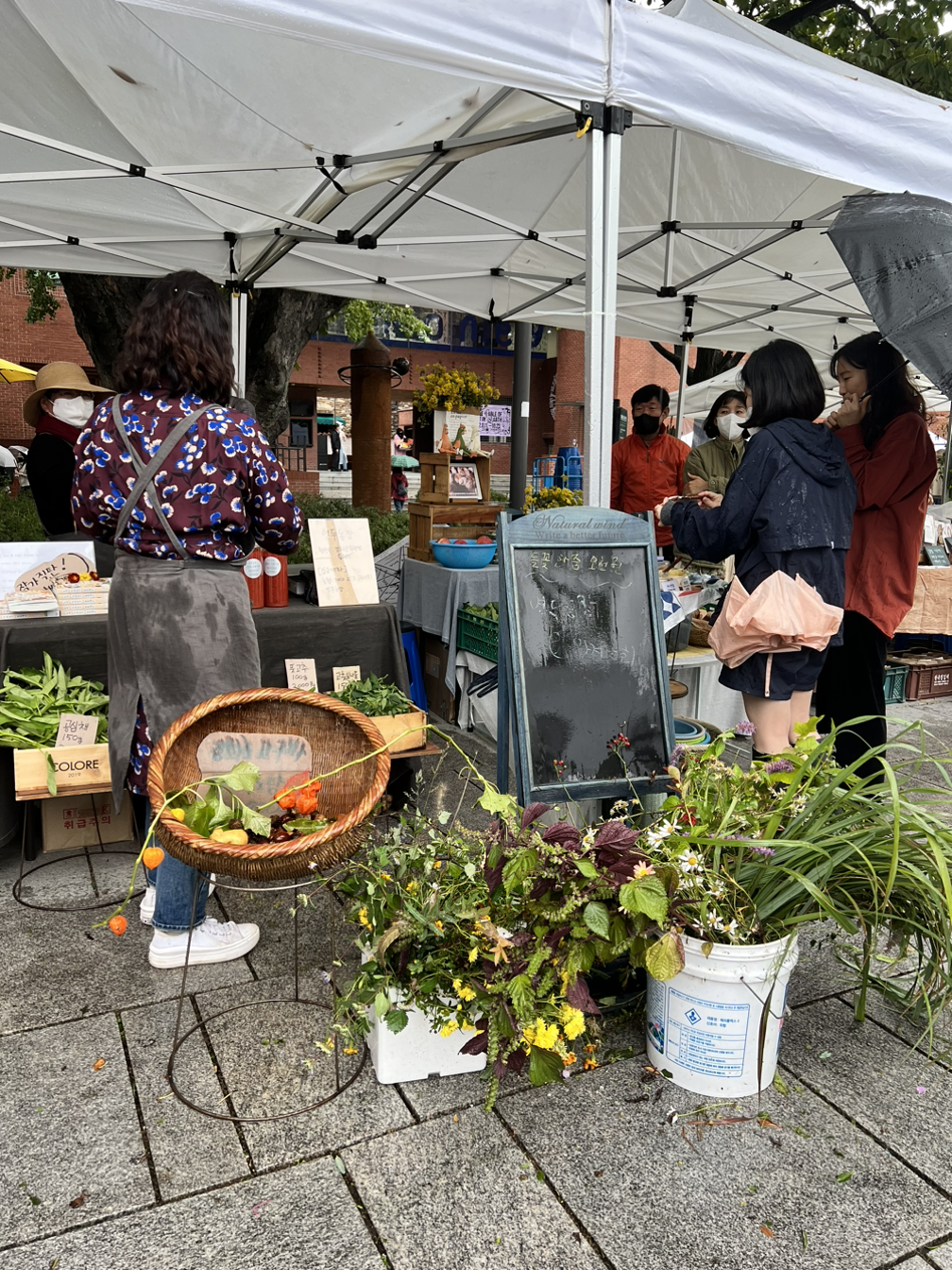 비가 내리는 와중에 마르쉐가 열렸다. 역시 평소에 마트에서 볼 수 없는 다양한 채소가 있었고 각종 나물이나 채소의 꽃도 선보였다. 모양이 조금 예쁘지 않은 것도, 어떻게 먹는지 알 수 없을 만큼 낯선 것도 이곳에선 자연스럽다. 시장에서 다양성을 만난다. 내가 모른다고 존재하지 않는 것은 아니다. 채소도, 세상에서 벌어지는 다양한 사건도.