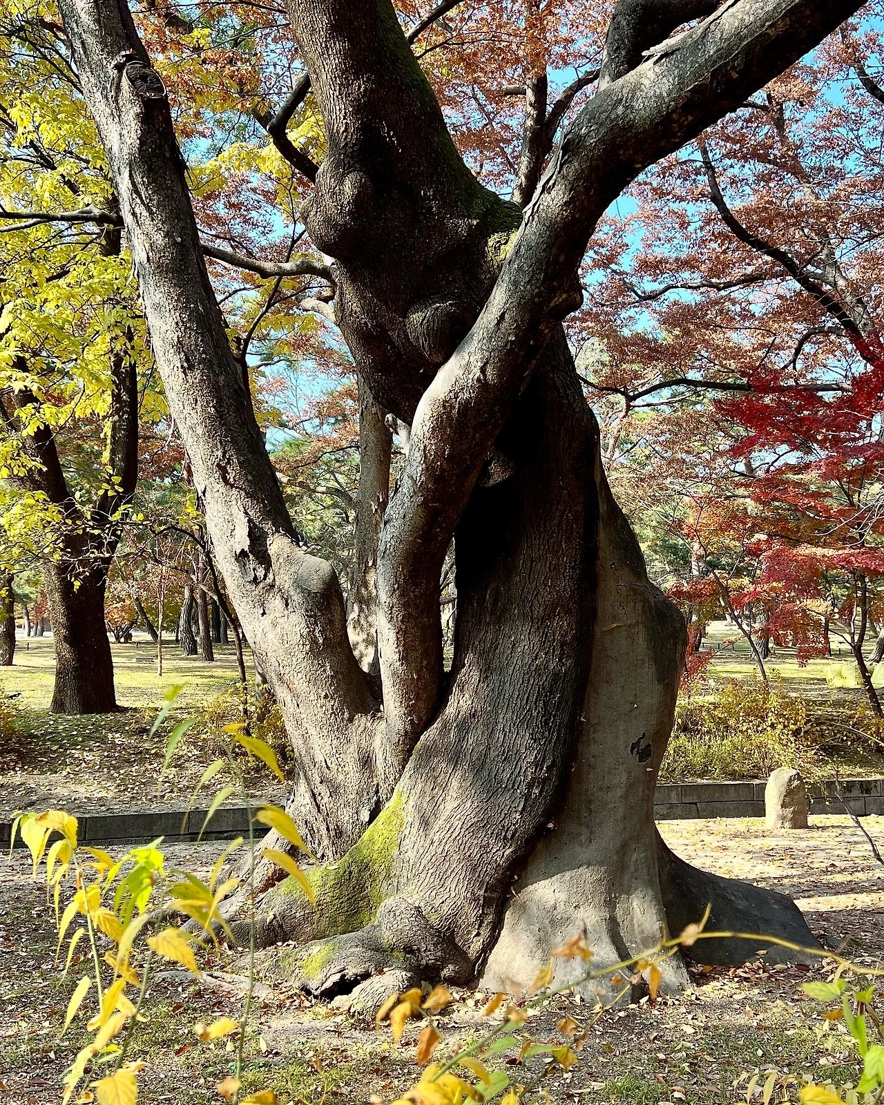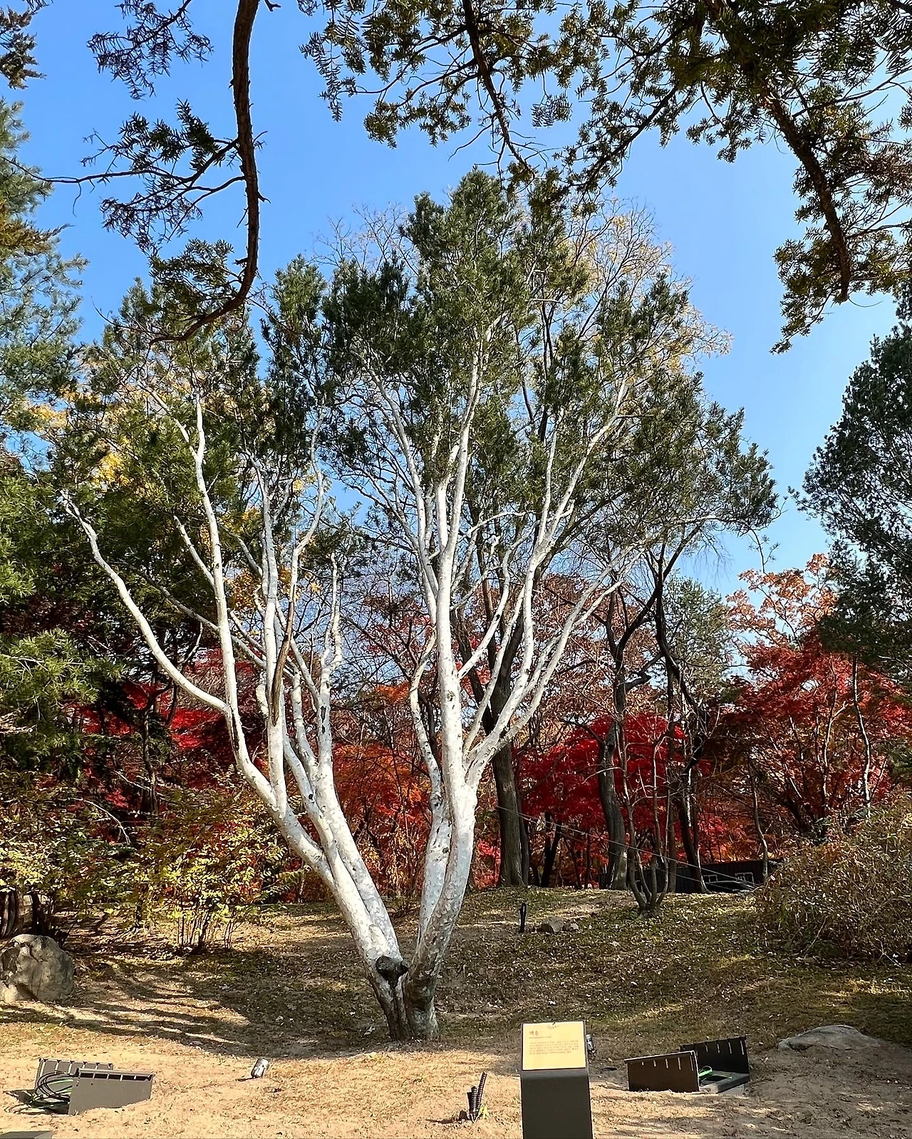 18세기 회화나무와 20세기 느티나무가 한 몸이 된 연리지도 보세요.