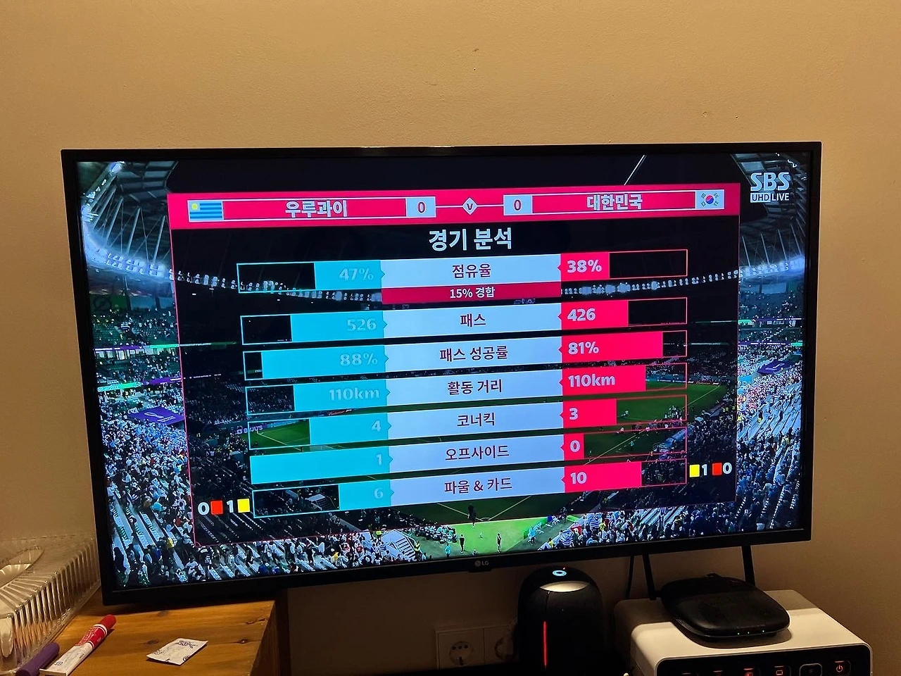 우루과이와의 월드컵 첫 경기를 남편과 보았는데 기분이 좋았다. 밀리지 않아서 기뻤다. 골이 하나쯤 들어갔으면 좋았겠지만 그래도 좋더라.