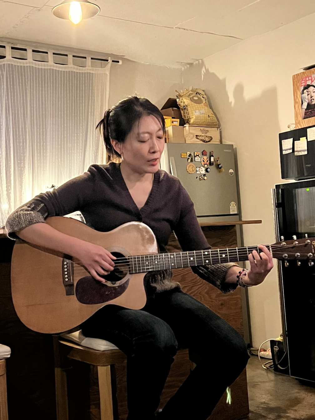 연극을 본 감상을, 친구의 방문 후에 그 느낌을 노래로 만들어 부르는 가수 송은지(전 소규모 아카시아 밴드)의 작은 공연이 동네 카페 <빠뿅>에서 열렸다.