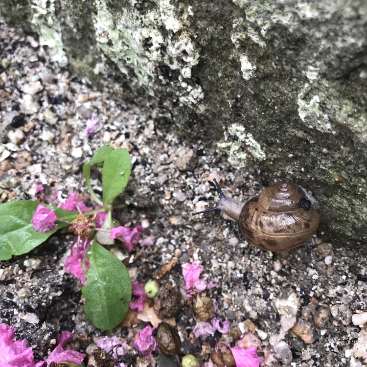 비가 적당히 내려 모기를 피해 화단 풀을 뽑다 이 아이를 만났다. 화단에서 만나는 쥐며느리는 좀 싫은데 얜 귀엽다. 백일 간다는 배롱나무꽃이 떨어져 화단은 분홍 융단이 되었다.