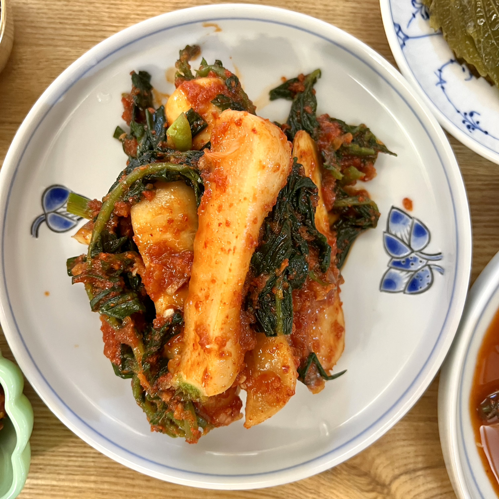 툇마루에 내놓은 알타리 김치는 아직도 익지 않았다. 그래도 무가 맛있어 충분히 제 빛을 낸다. 김치로 인해 행복한 밥상이다.