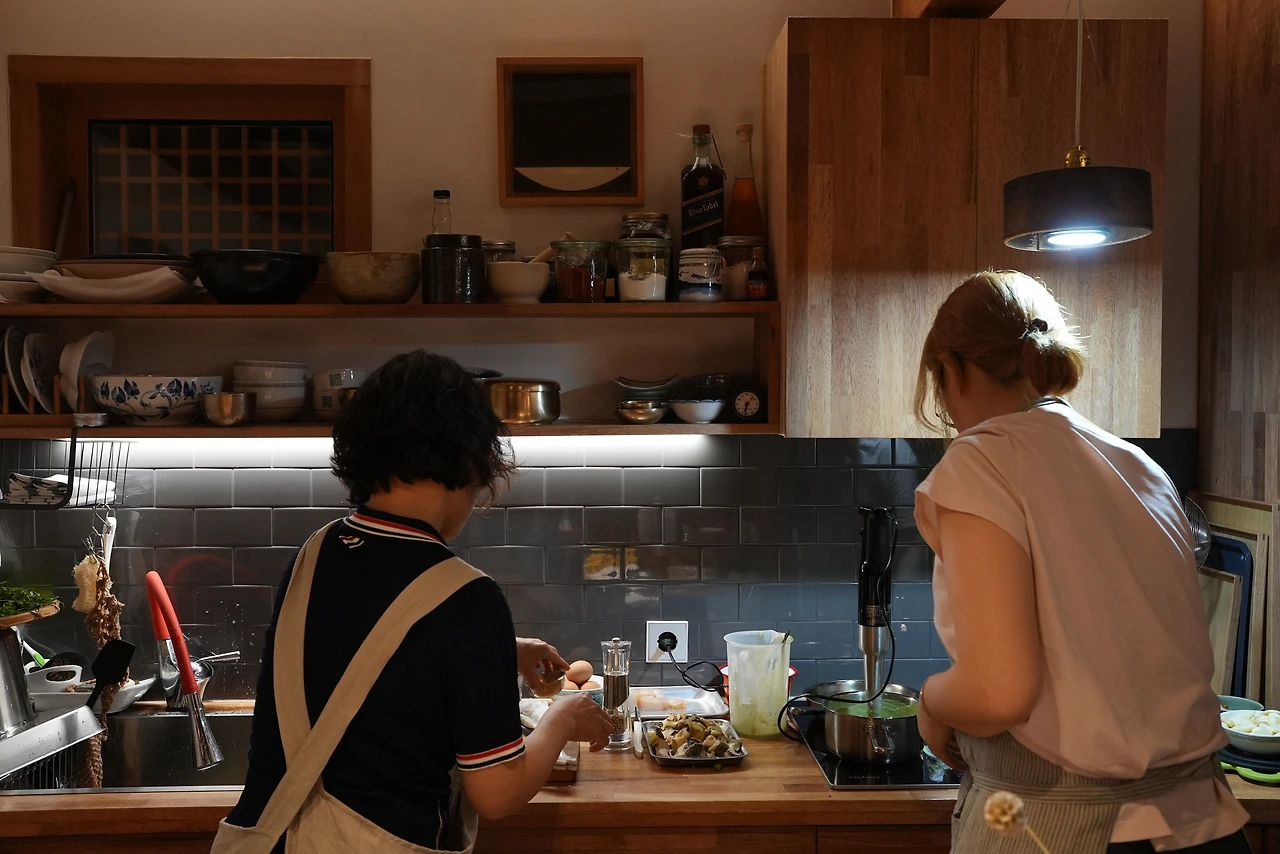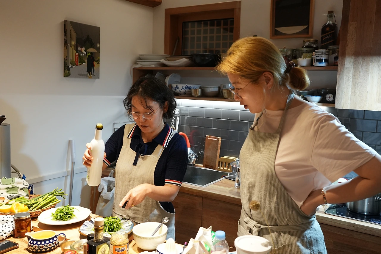 이름하여 <밥잇수다>. 자란님과 날짜를 정하고 사람을 모았다. 여덟 분이 작은 마루의 테이블을 사이에 두고 옹기종기 모여 앉았고 자란님은 전광석화 같은 속도와 뛰어난 실력으로 음식을 만들어 내셨다. 심지어 아름답게. 나는 첫 책의 저자로 횡설수설했다.