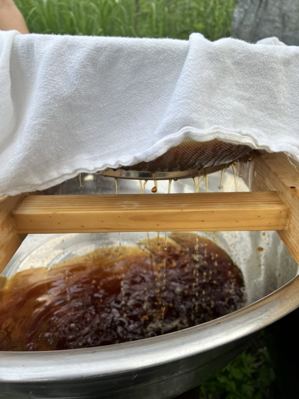 (참고로, 여섯 말에서 간장이 5리터 이상 나왔고 고로쇠물로 담근 장은 간장이 더 많이 나왔다. 물의 밀도가 높아 메주에 장물이 조금 덜 스민 것이다.)
