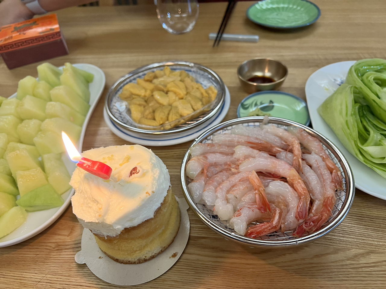 인생에 이벤트 따위는 없다고 외치는 것은 아니나 뭔가 챙기는 것은 어색하고 귀찮다. 몇 해째 결혼기념일 여행도 접어 기념일이 시들해졌는데 심야에 혜민 씨가 와인과 케이크와 멜론을 사들고 와 깜짝 파티를 열어줬다. 나는 우니와 단새우를 꺼내고 오이를 얇게 편 썰어 상을 차렸다. 이렇게라도 기억을 남겨서 무척 즐겁고 기뻤다.