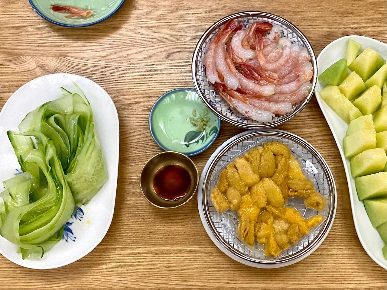 그리고 우니와 단새우를 편 썬 오이에 싸 먹으니 담백하고 맛도 좋았다. 필러로 오이를 썰고 그 위에 약간의 소금을 뿌리고 올리브 오일을 두른다. 오이 위에 간장 찍은 단새우를 올리고 우니를 얹은 후 와사비 터치 후 오이로 돌돌 말아 입에 쏘옥!!! 꿀맛이다. 안주력이 상승했다.