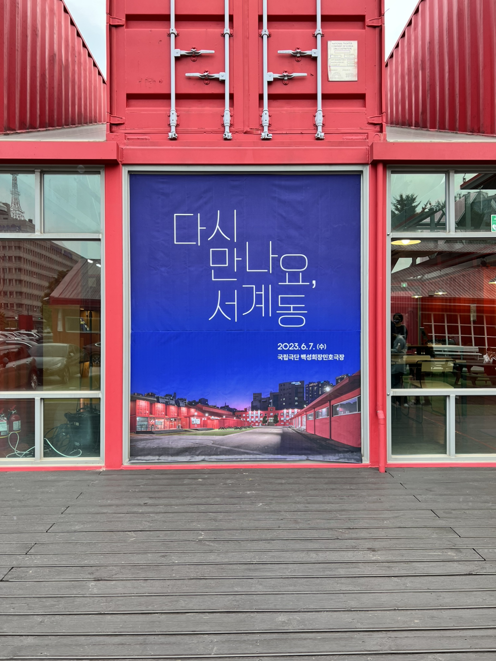 그중 서계동 극장은 오는 6월 18일 <보존과학자>를 끝으로 당분간 운영되지 않는다. 매력적이며 낮은 빨간 건물과 너른 마당이 사라지고 새로운 건물이 들어설 예정이란다. 서계동극장에서 상연될 작품은 당분간 홍익대학교 대학로 예술센터 소극장 무대에 올려진다고 한다.