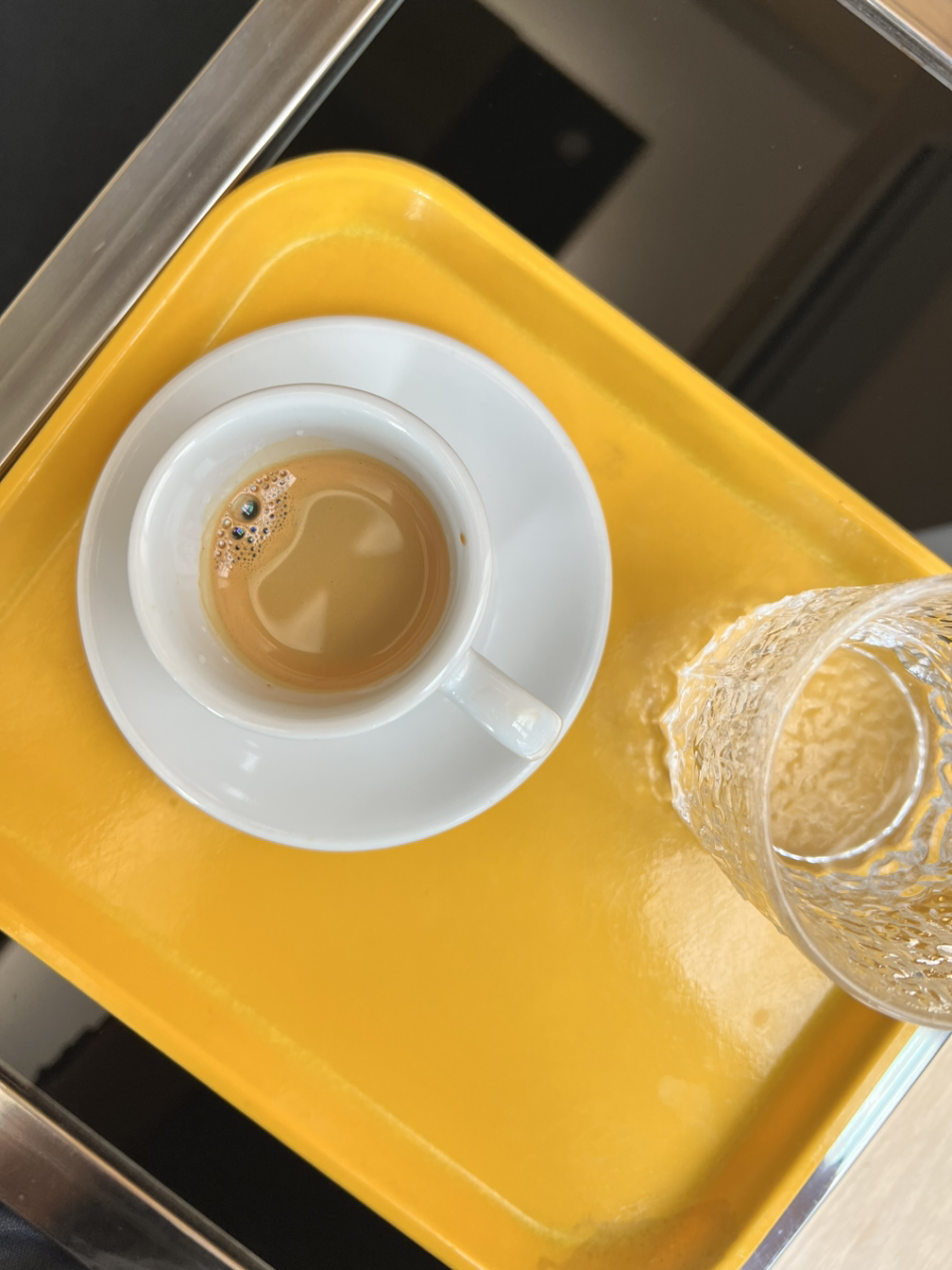 봉사를 가려면 집 앞에서 버스를 탄 후 한 차례 환승이 필요하다. 환승하는 곳엔 작은 커피숍이 있는데 아침 일찍 문을 연다. 그곳에 내렸는데 환승할 버스가 오기까지 5분 이상 여유가 있으면 커피를 한 잔 마신다. 오늘은 7분의 여유가 생겼다. 짧은 시간에 급속으로 카페인을 충전하고 싶을 땐 에스프레소다! 몇 번 들렀더니 이제 설탕을 내주지 않는다. 내가 설탕은 필요 없다 몇 번 말했기 때문이다.