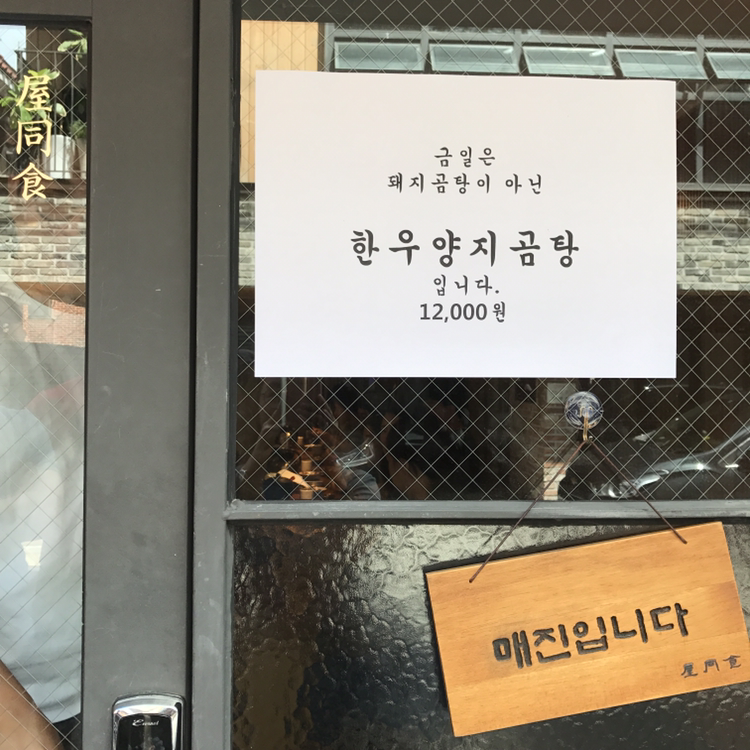 음식이 먹는 사람의 태도를 잡아주는 신기한 경험을 했다. 오늘 하루 옥동식에선 돼지곰탕대신 한우양지곰탕을 선보였다. 얇고 단정하게 썰은 소고기와 새싹이나 내는 여린 초록색의 얼갈이가 맑은 소고기국물에 수북히 담긴 그릇을 받자 나는 허리를 곧게 펴고 최대한 조심스럽게 국물을 맛보았다.