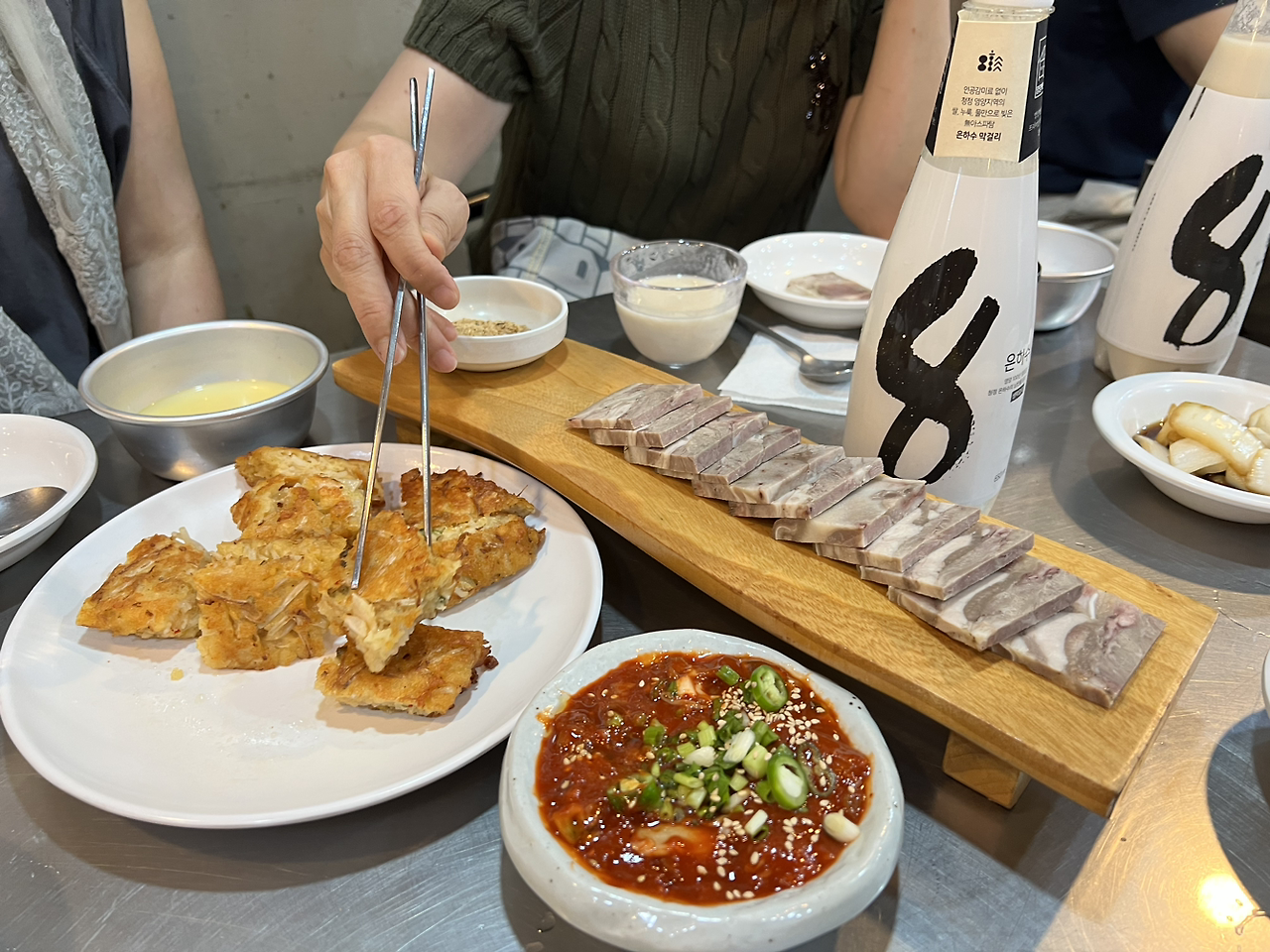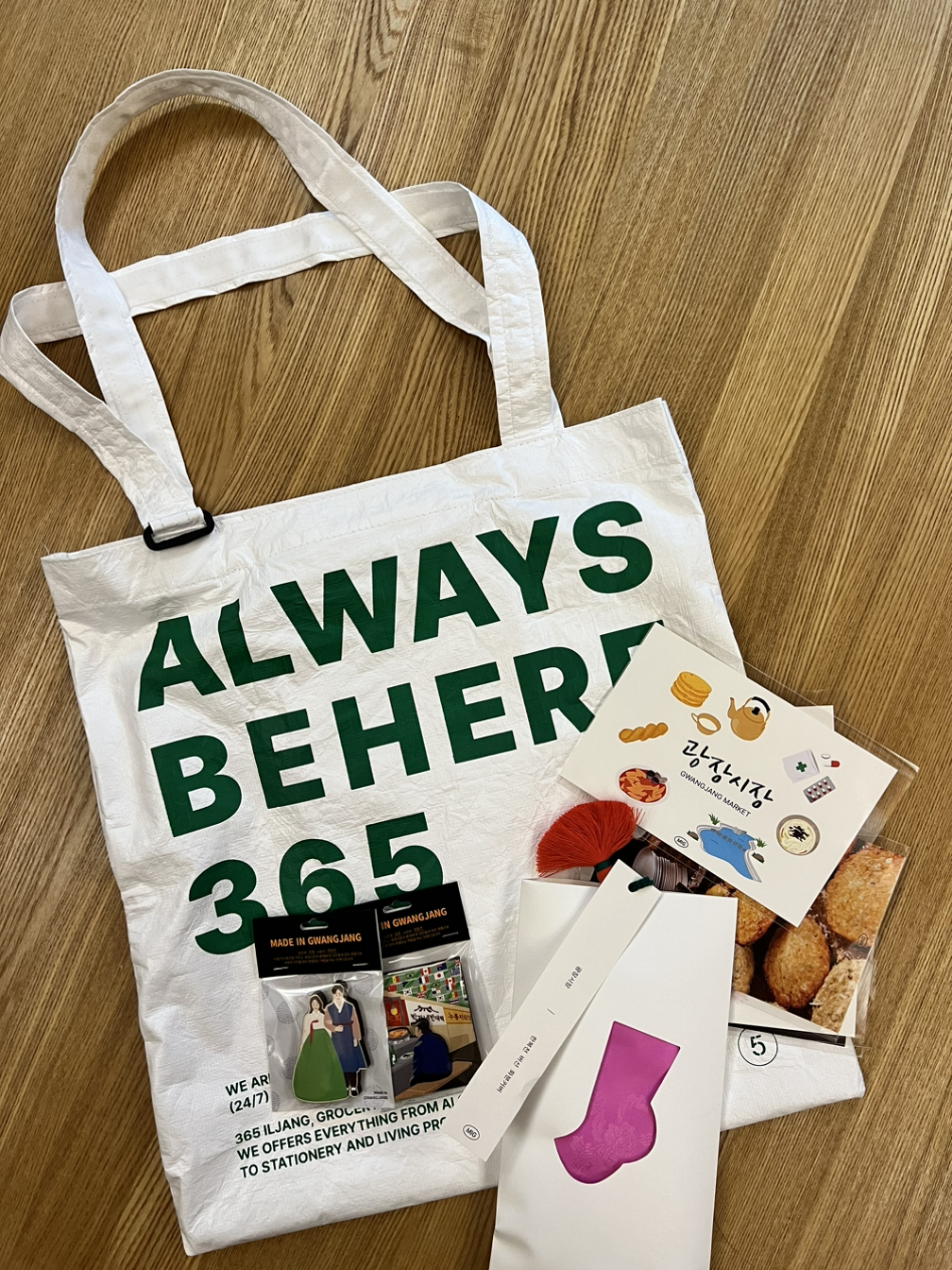 박가네 2호점 대표 메뉴인 편육, 녹두전, 어리굴젓 조합의 삼합 등 다양한 음식과 막걸리를 먹고 광장시장의 힙한 편집샵 ‘365일장’에서 판매하는 예쁜 굿즈를 선물 받았다. 에코백, 엽서, 자석 장식품, 화분 싸개 긍 모두 예뻐 기분까지 좋게 하는 물건이었다.